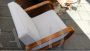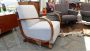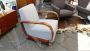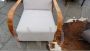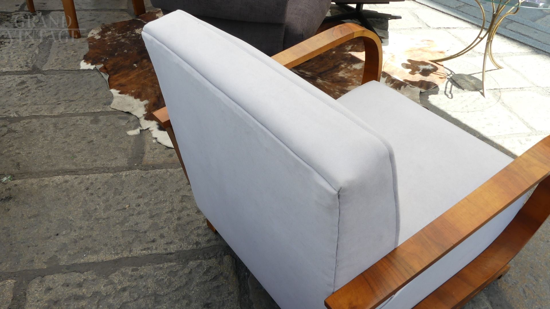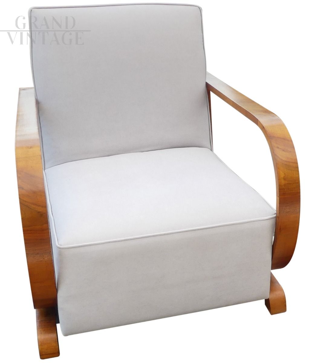 Poltrona decò Austriaca degli anni '40 - '50 in alcantara microfibra e legno di faggio. Impiallacciatura in noce. Restaurata.