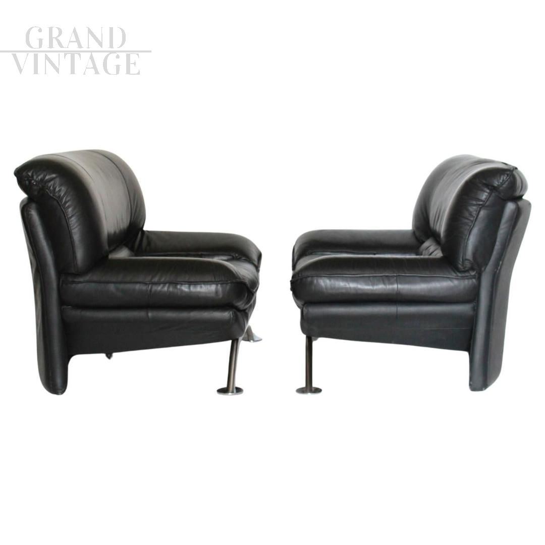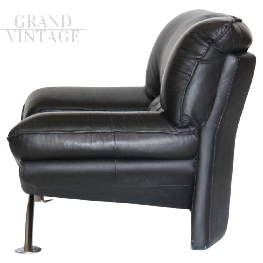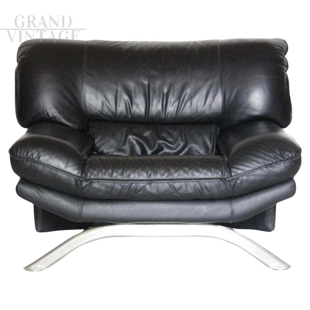 Poltrona design di Nicoletti Salotti per Avanti in pelle nera ed acciaio