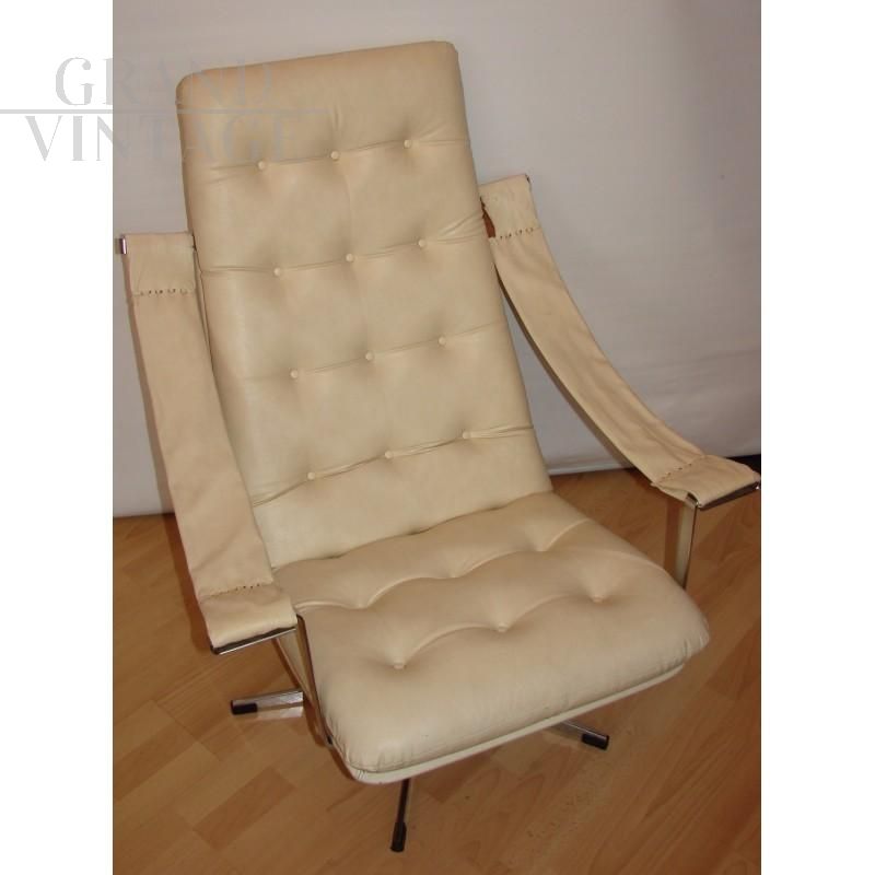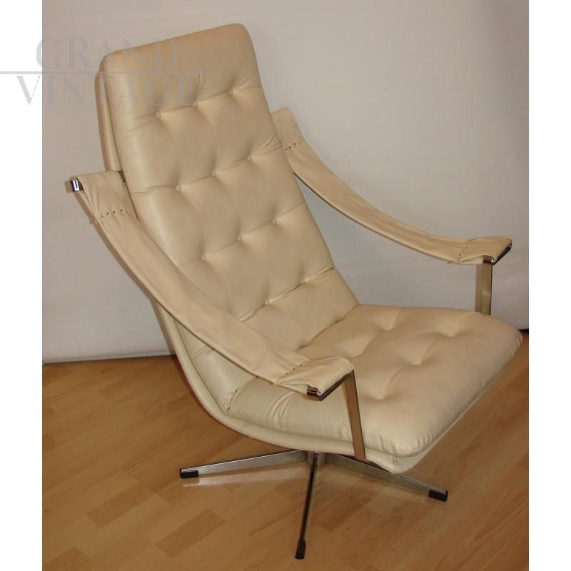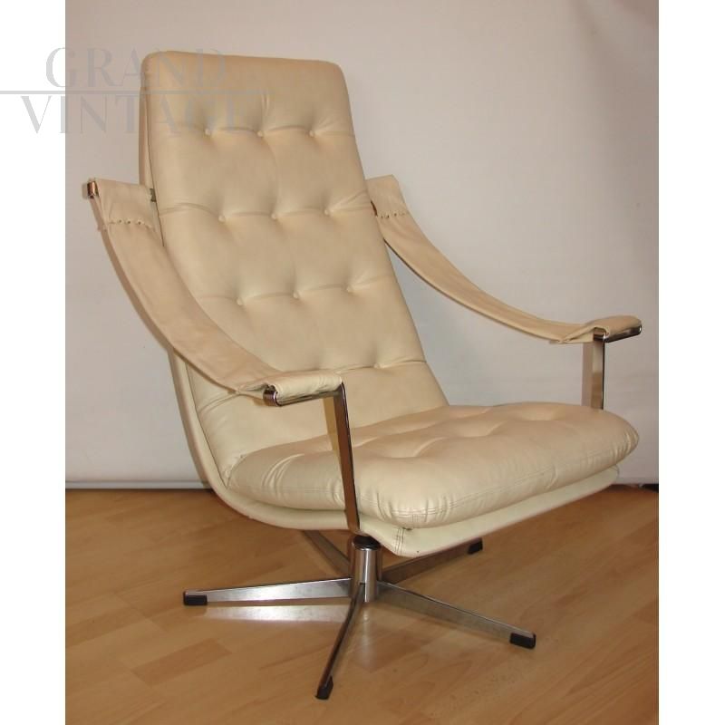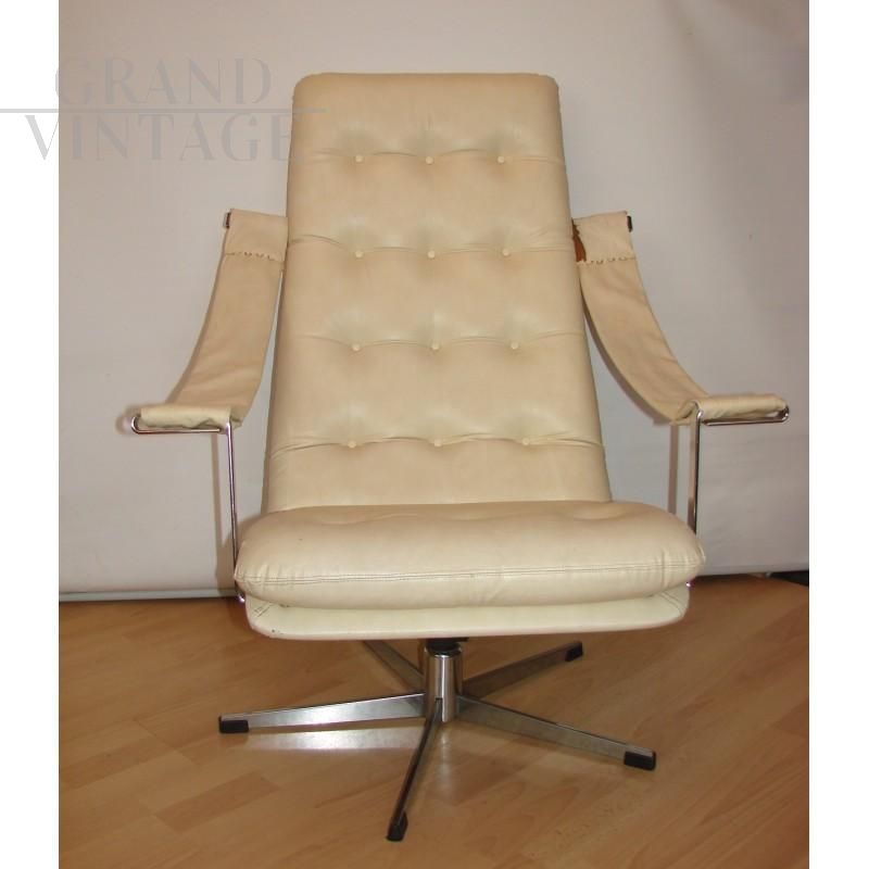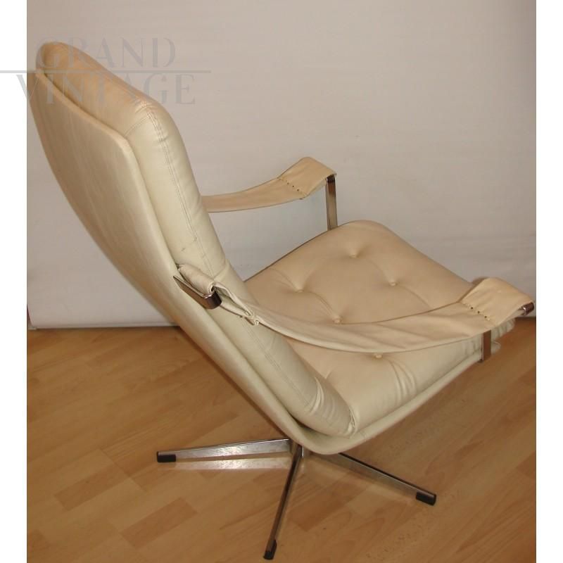 Poltrona di design Geoffrey Harcourt per Artifort, Paesi Bassi. Buone condizioni, poltrona realizzata in pelle ecologica chiara, struttura girevole.