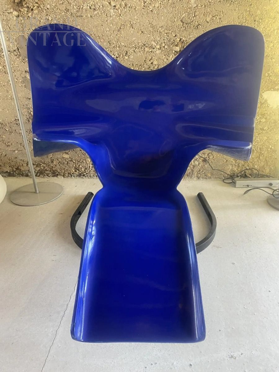 Questa edizione limitata, numerata 00/100, è l'unica in un'esclusiva tonalità di blu Klein, un colore profondo e vibrante che aggiunge un'ulteriore dimensione di rarità e desiderabilità. Ogni poltrona di questa serie limitata è un'opera d'arte in sé, rendendo ogni dettaglio ancora più prezioso per i collezionisti e gli amanti del design.