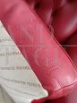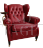 Questa poltrona modello 1919 di Poltrona Frau è una seduta storica che si ispira al modello 128, entrato nel catalogo di Renzo Frau a partire dal 1919 e che riprendeva i caratteri opulenti delle bergère stile rococò. Imbottita interamente e rivestita in pelle rossa, presenta il disegno dello schienale ottenuto con lavorazione manuale a capitonnée su una struttura portante in faggio stagionato. La struttura presenta le grandi orecchie dello schienale e i braccioli ampi a svolazzo rifiniti a plissé, con il braccio portapiatto in ottone e piattino in legno di noce. Etichetta a rombo in metallo dorato sulla parte bassa posteriore dello schienale a riportare i dettagli della poltrona ed il numero di serie dell'esemplare (n. 3066). Al fondo, etichetta della manifattura Poltrona Frau con numero di serie. cm. 90 x 93 x 95.