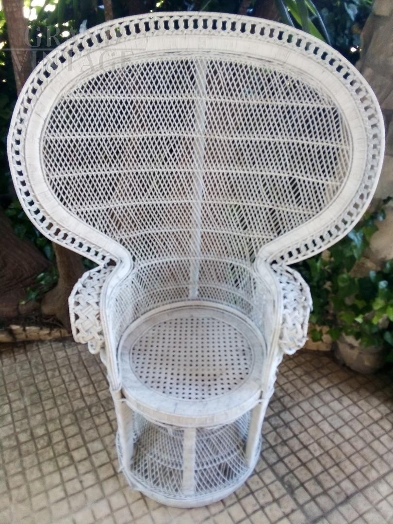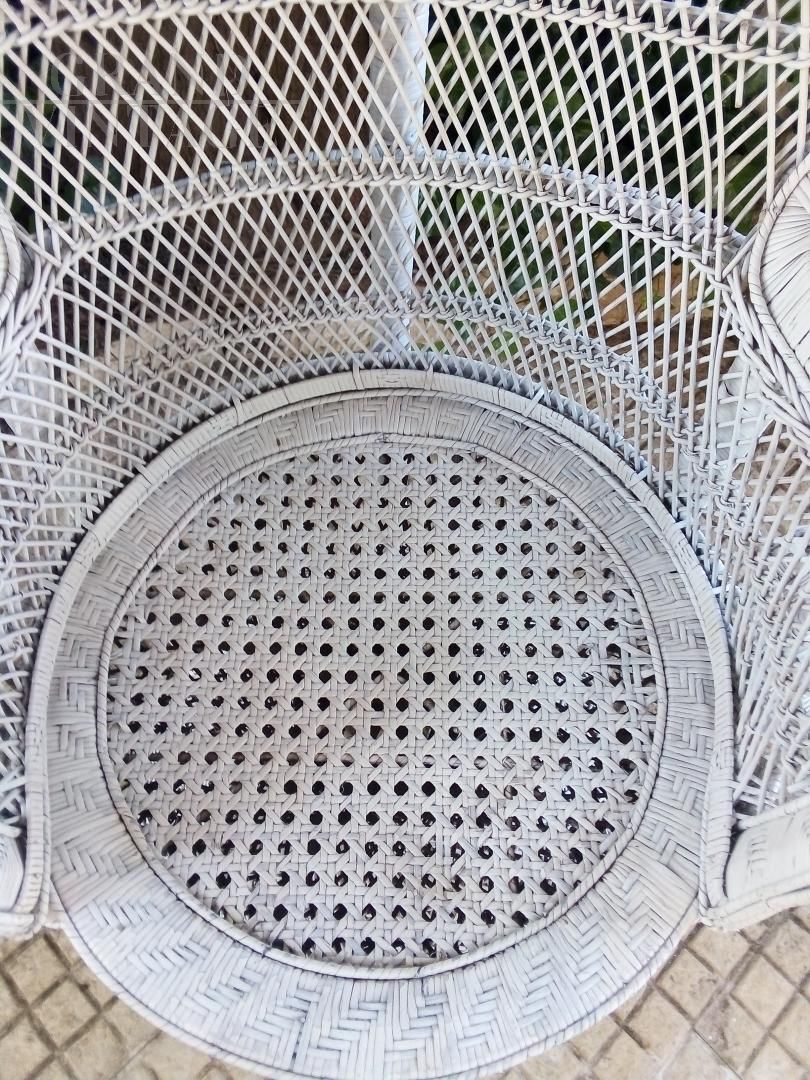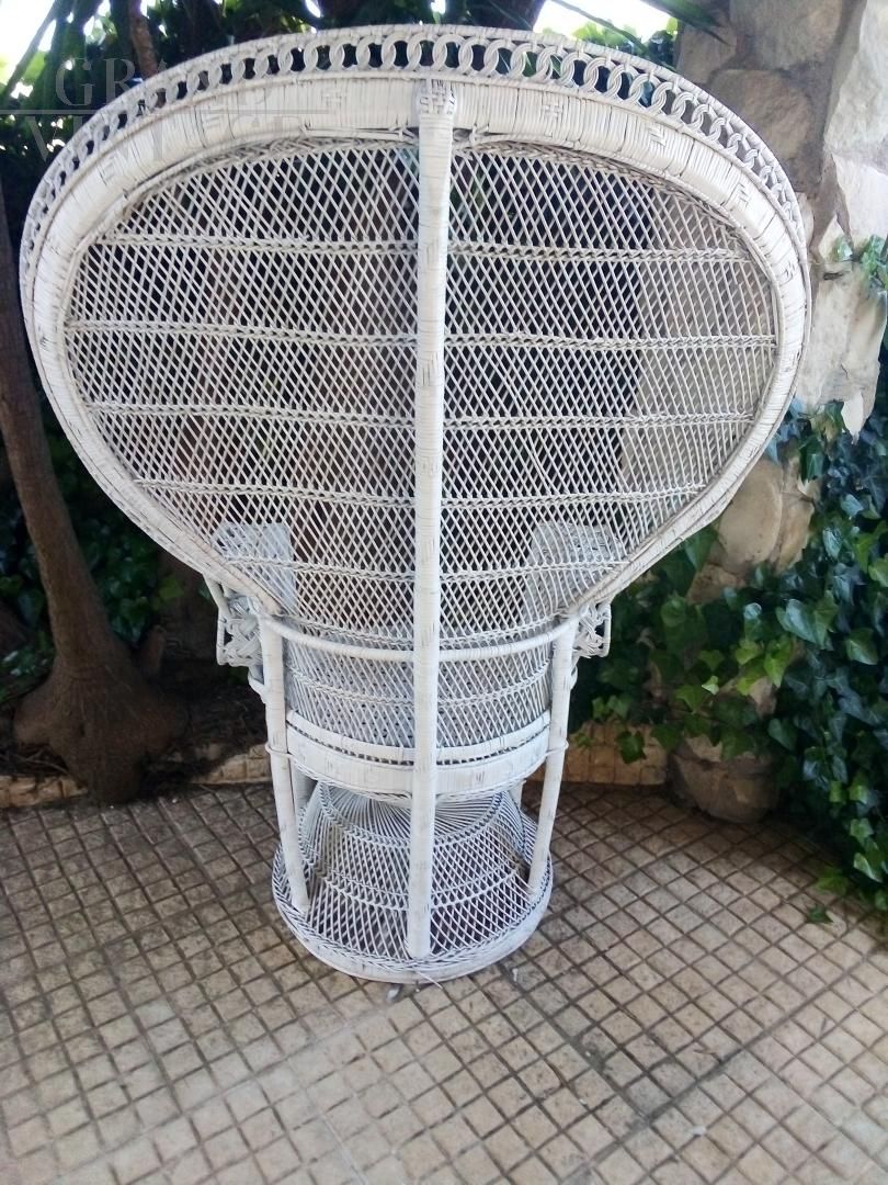 Poltrona in vimini Emmanuelle Peacock in pittura bianca