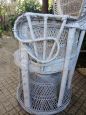Poltrona Pavone - Emmanuelle Peacock di Kok Maison in vimini e bamboo in pittura bianca, anni '70.