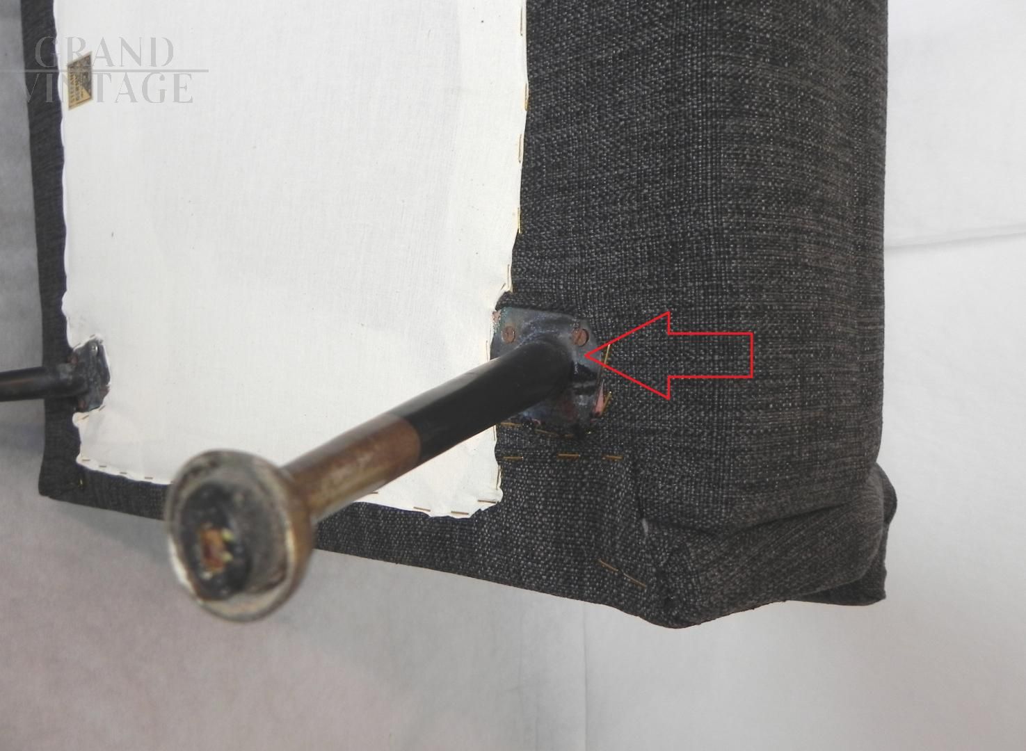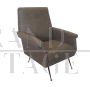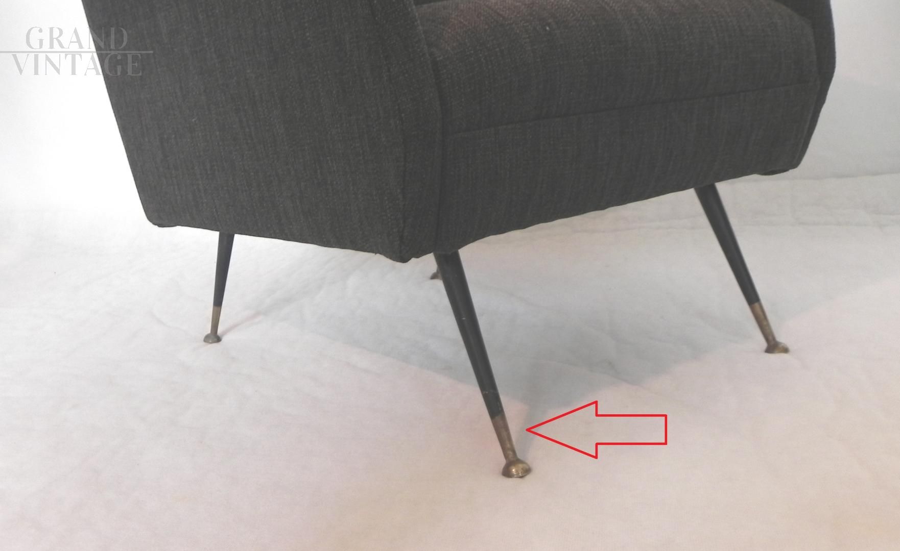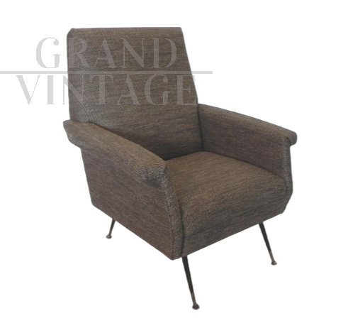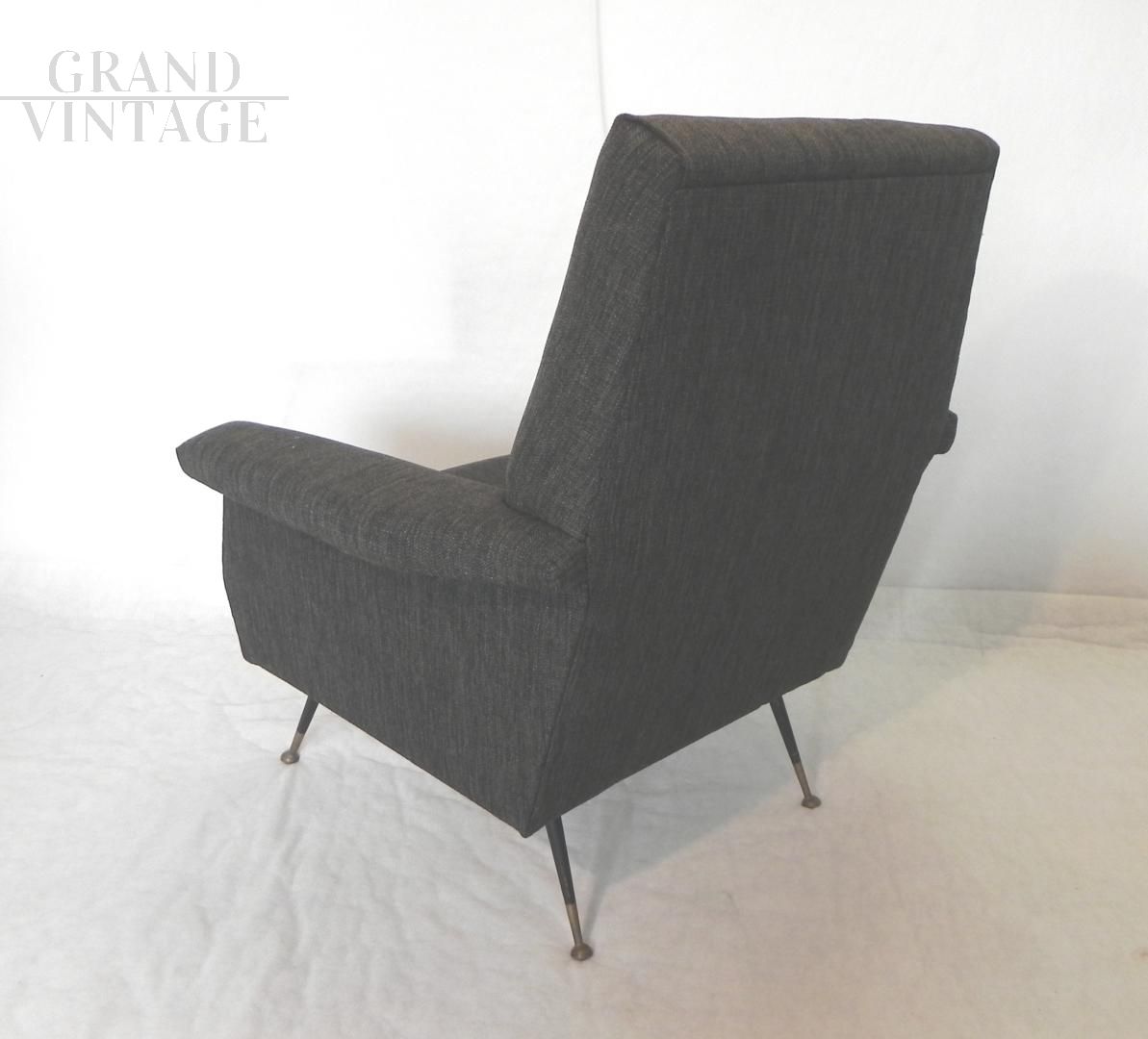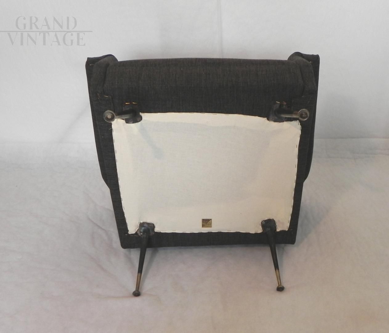 Poltrona modernariato anni '60 in tessuto grigio scuro, restaurata
