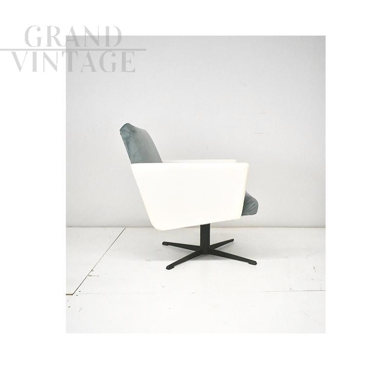 Poltrona vintage girevole anni ’70 in velluto azzurro