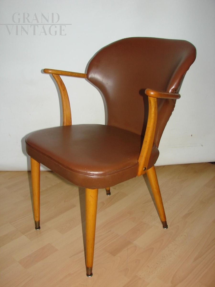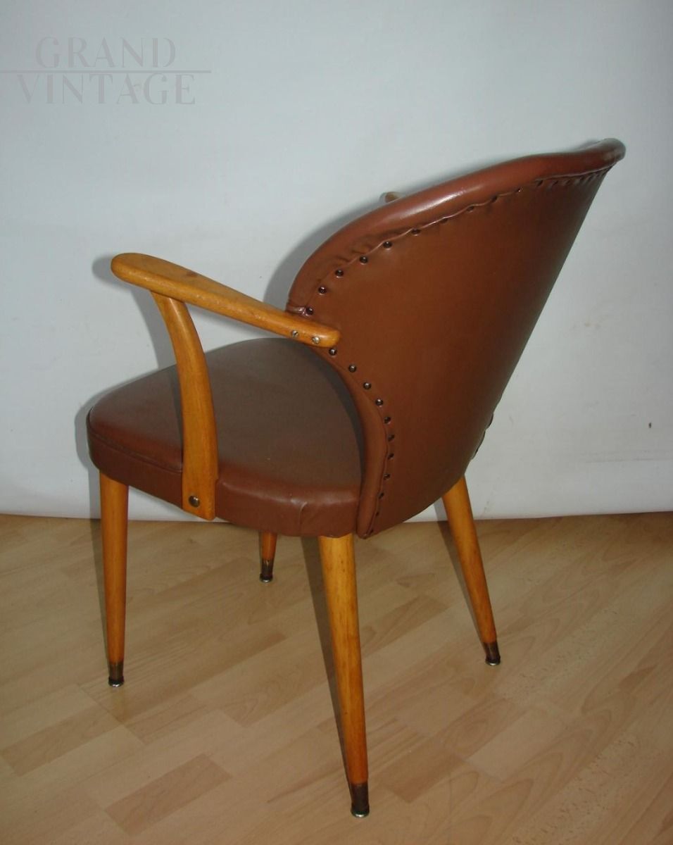 Poltrona vintage modernariato in ecopelle marrone, anni '60