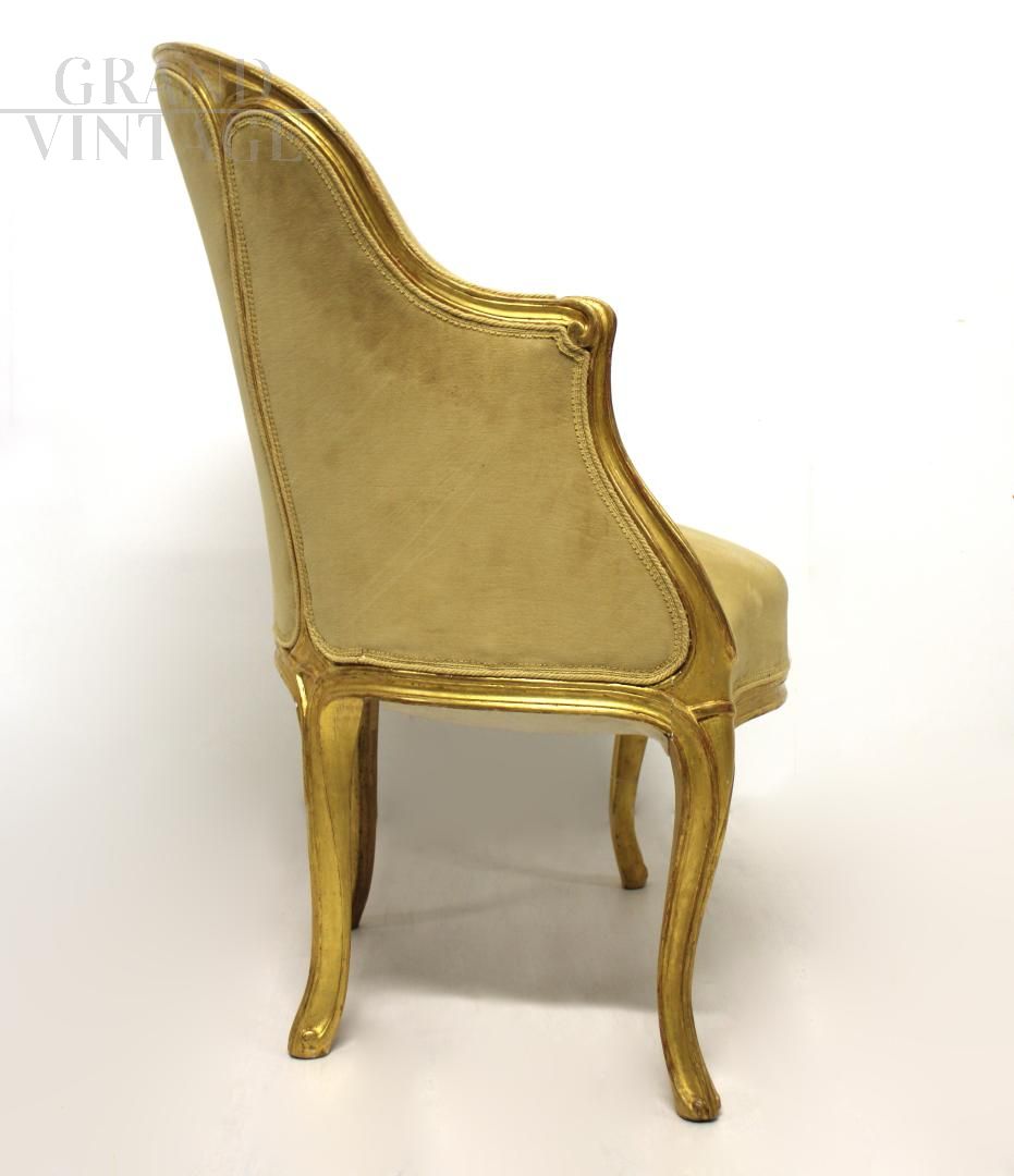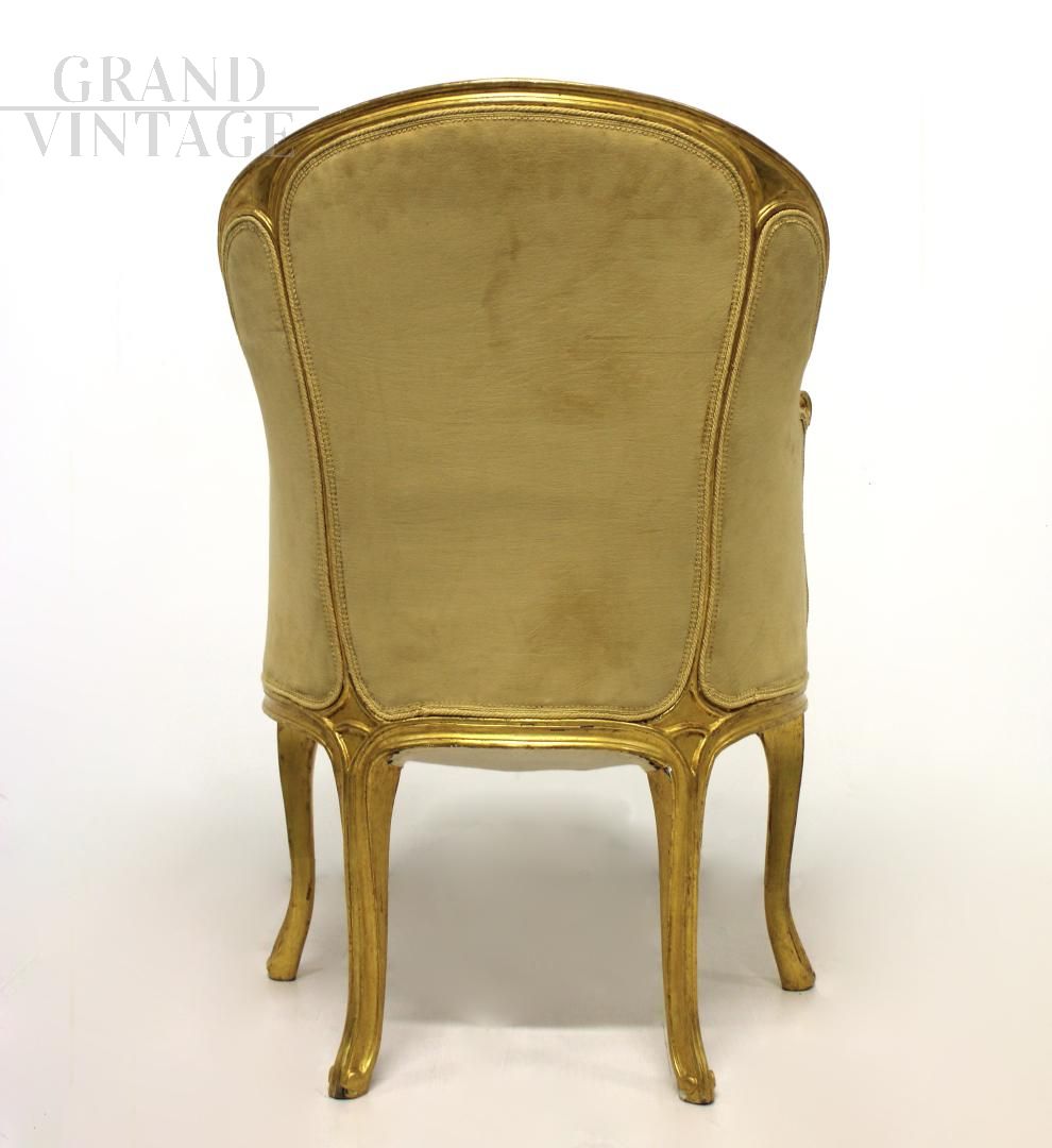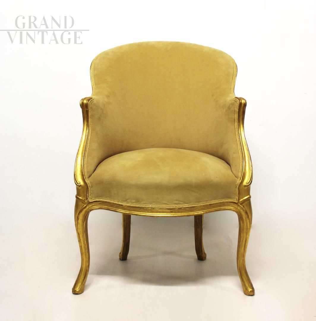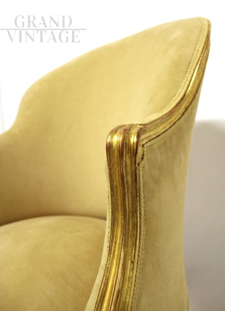 Poltroncina Impero primi '800 in legno dorato e velluto giallo ocra