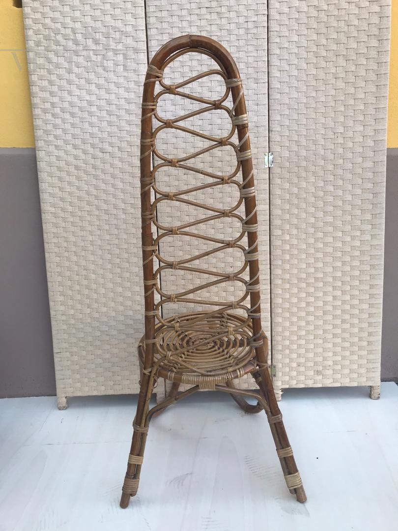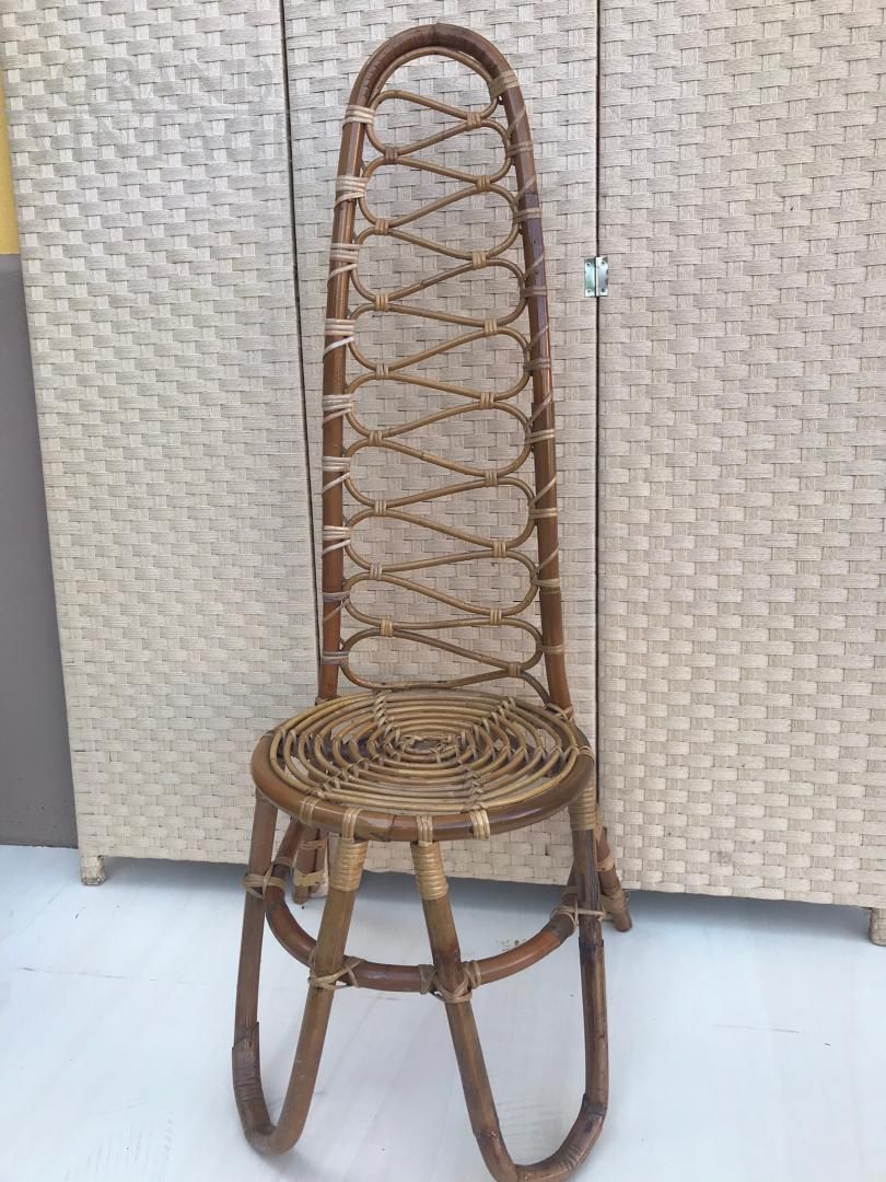 Coppia di poltroncine in vimini con schienale alto