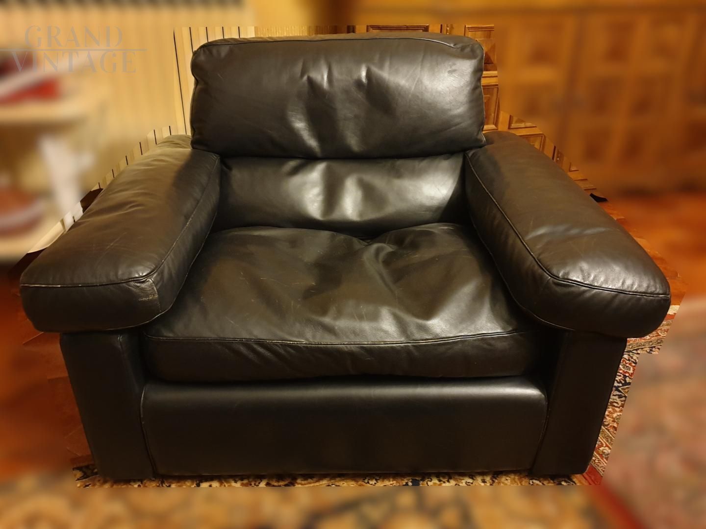 Set salotto di Tito Agnoli per Poltrona Frau in pelle nera, anni '70-'80