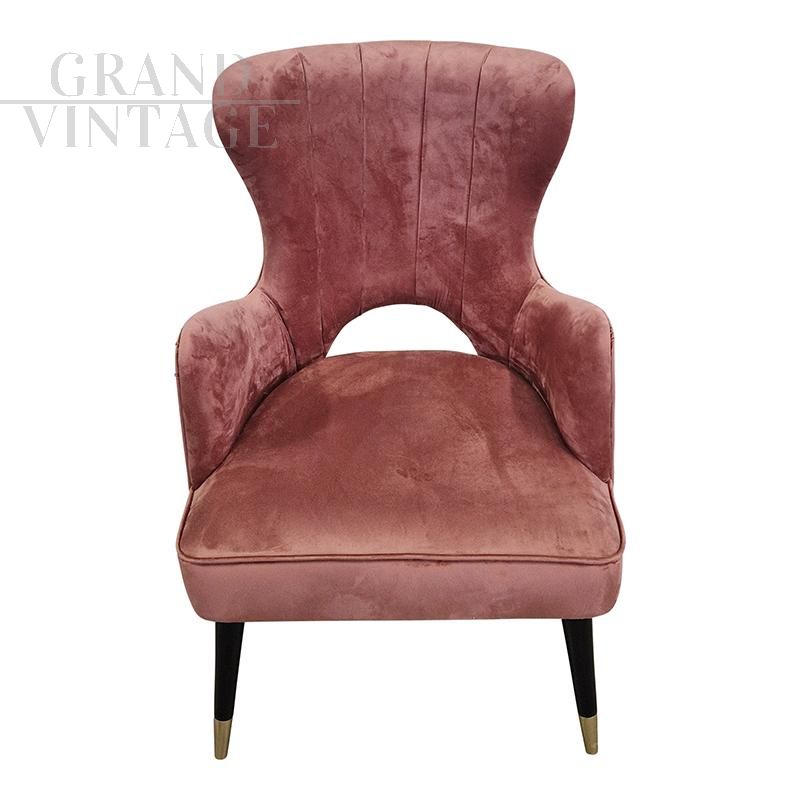 Poltrone in stile mid-century in velluto rosa antico