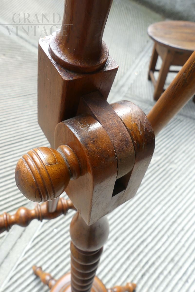 Particolare porta asciugamani basculante a vite, richiudibile, in legno di ciliegio. L'articolo è dell'inizio del '900, utile e davvero elegante.