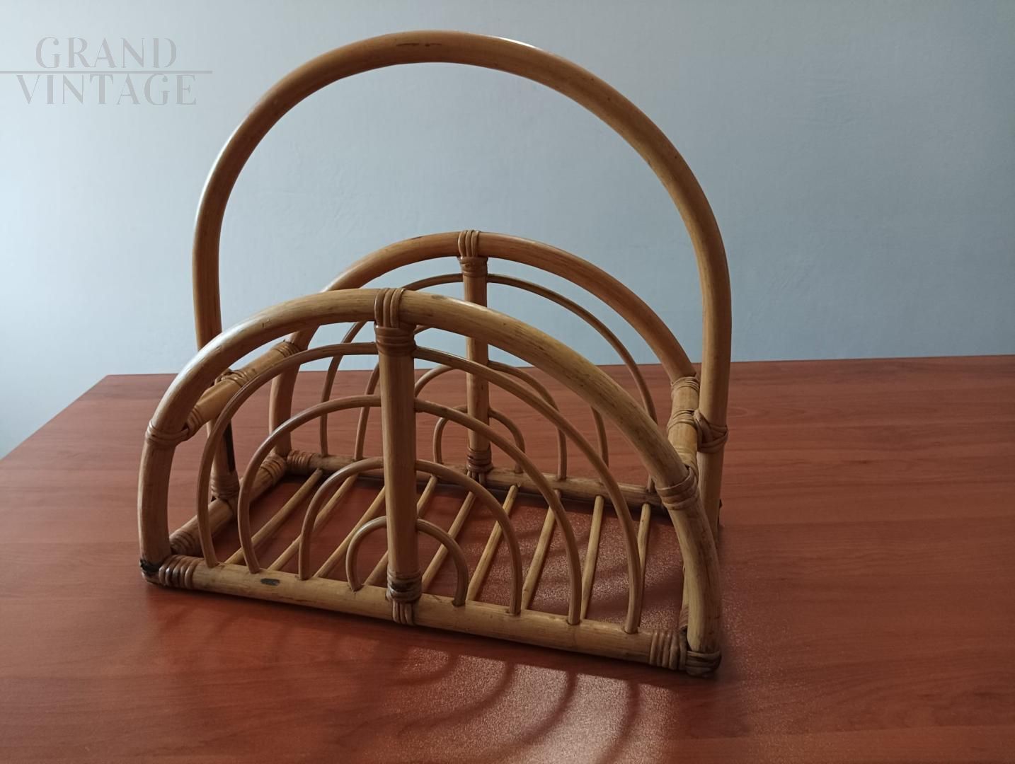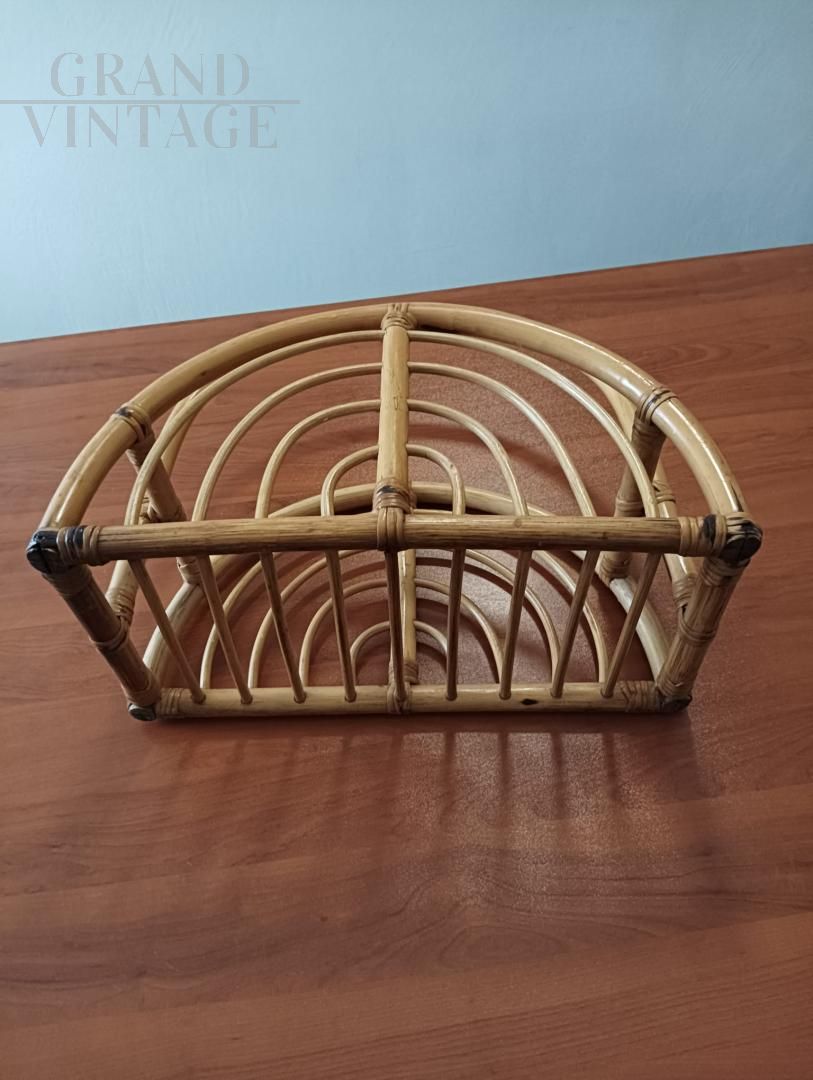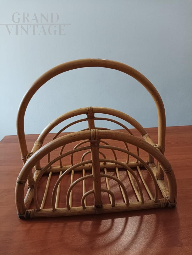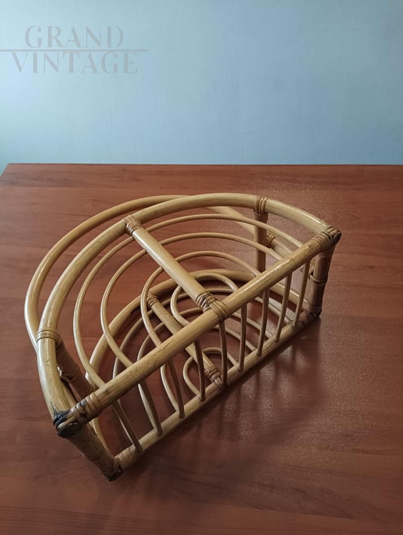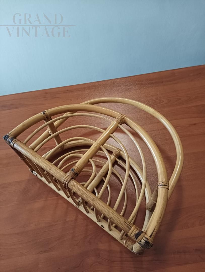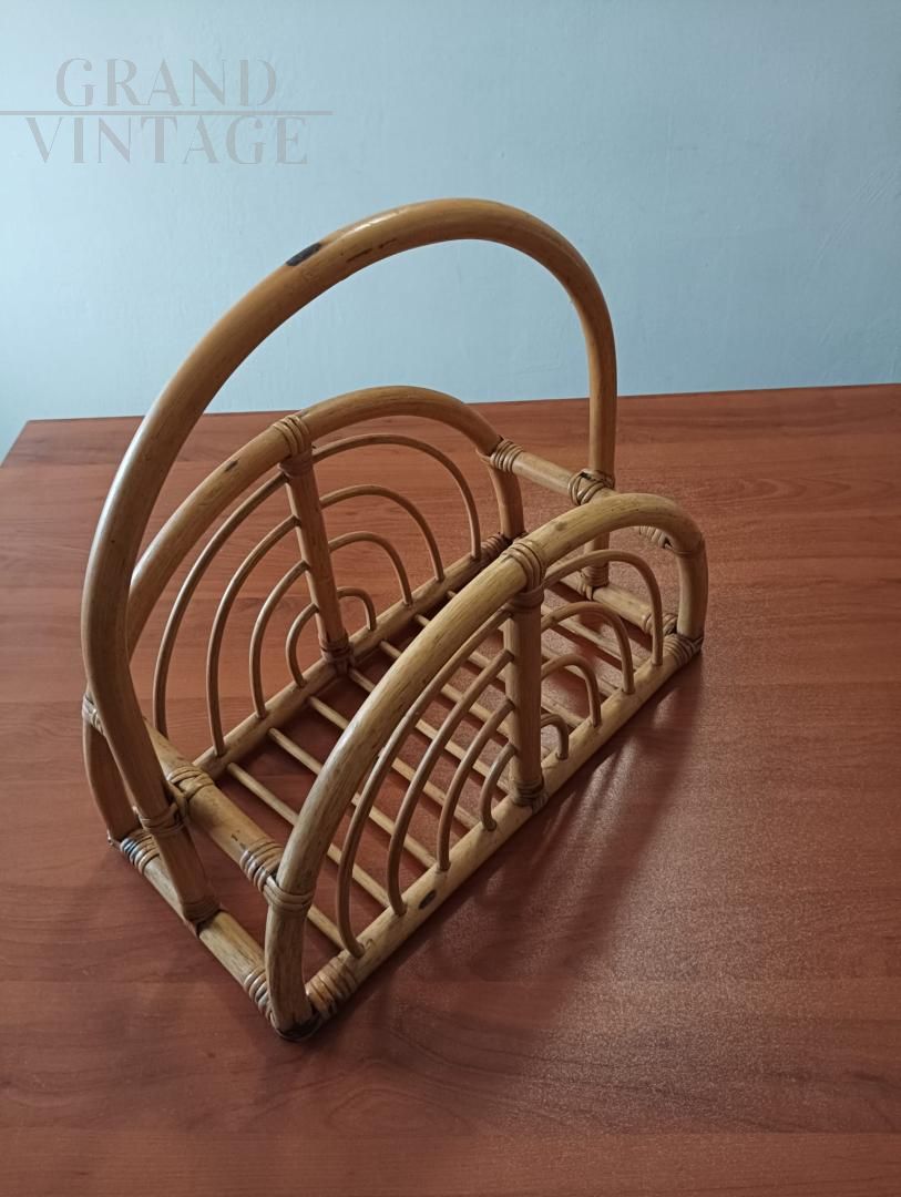 Porta riviste Mid-Century in vimini e Bambù
