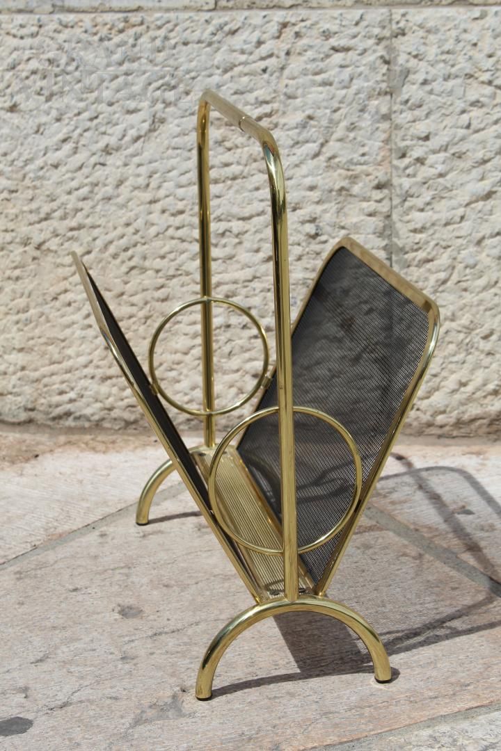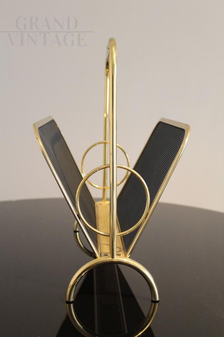 Portariviste in ottone e metallo laccato nero, Italia anni '70