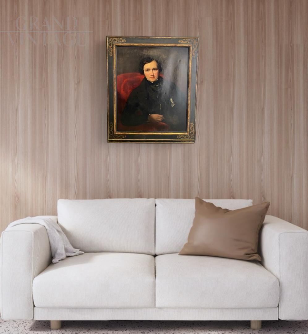 Ecole anglaise XIXe s portrait de gentilhomme, huile sur toile, 77x64 cm Légères traces d'usure toile cm. 77 x 64 cadres 92,5x 80cm
