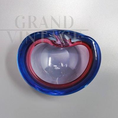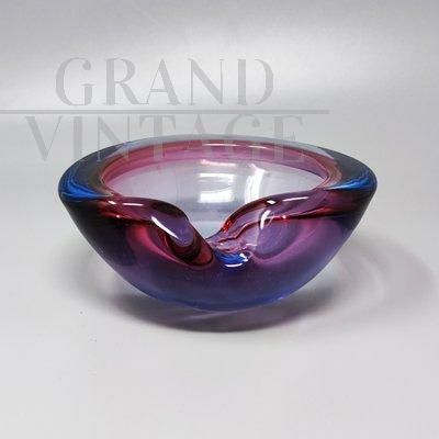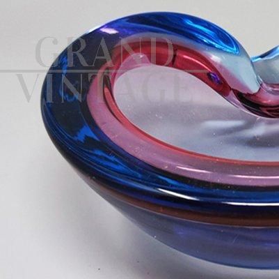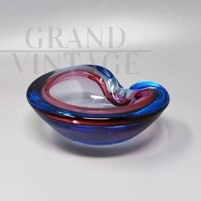 Stupefacente vide poche, posacenere o svuotatasche di Flavio Poli per Seguso in vetro sommerso di Murano nei colori blu e rosa, prodotto in Italia negli anni '60. L'oggetto è in ottime condizioni.