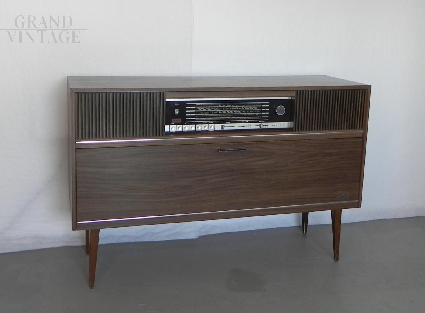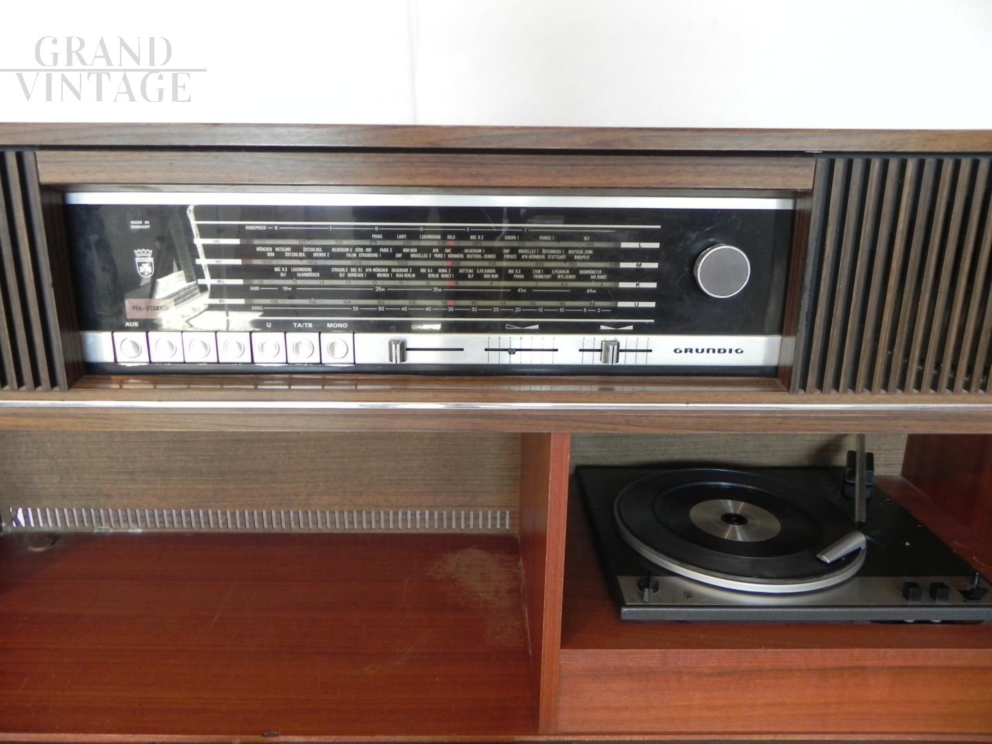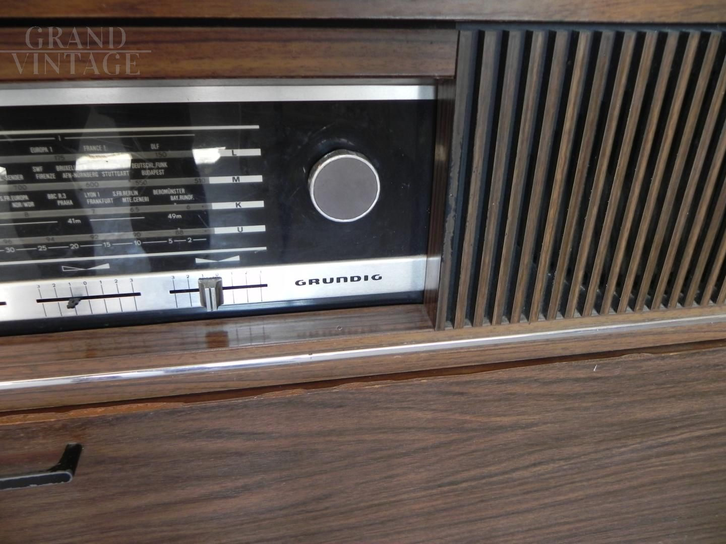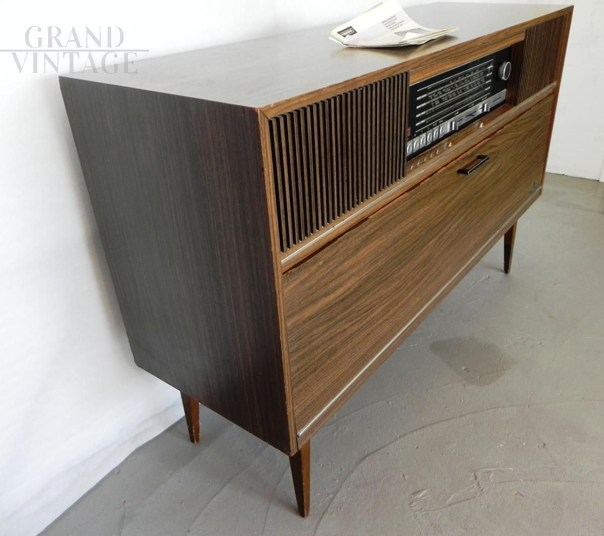 Bellissimo mobile radio giradischi Grunding anni '70, mobile in legno in buono stato, nell'anta frontale manca parte del bordo superiore, come da foto. La radio funziona bene, il giradischi è da riparare. Funziona una sola cassa acustica.