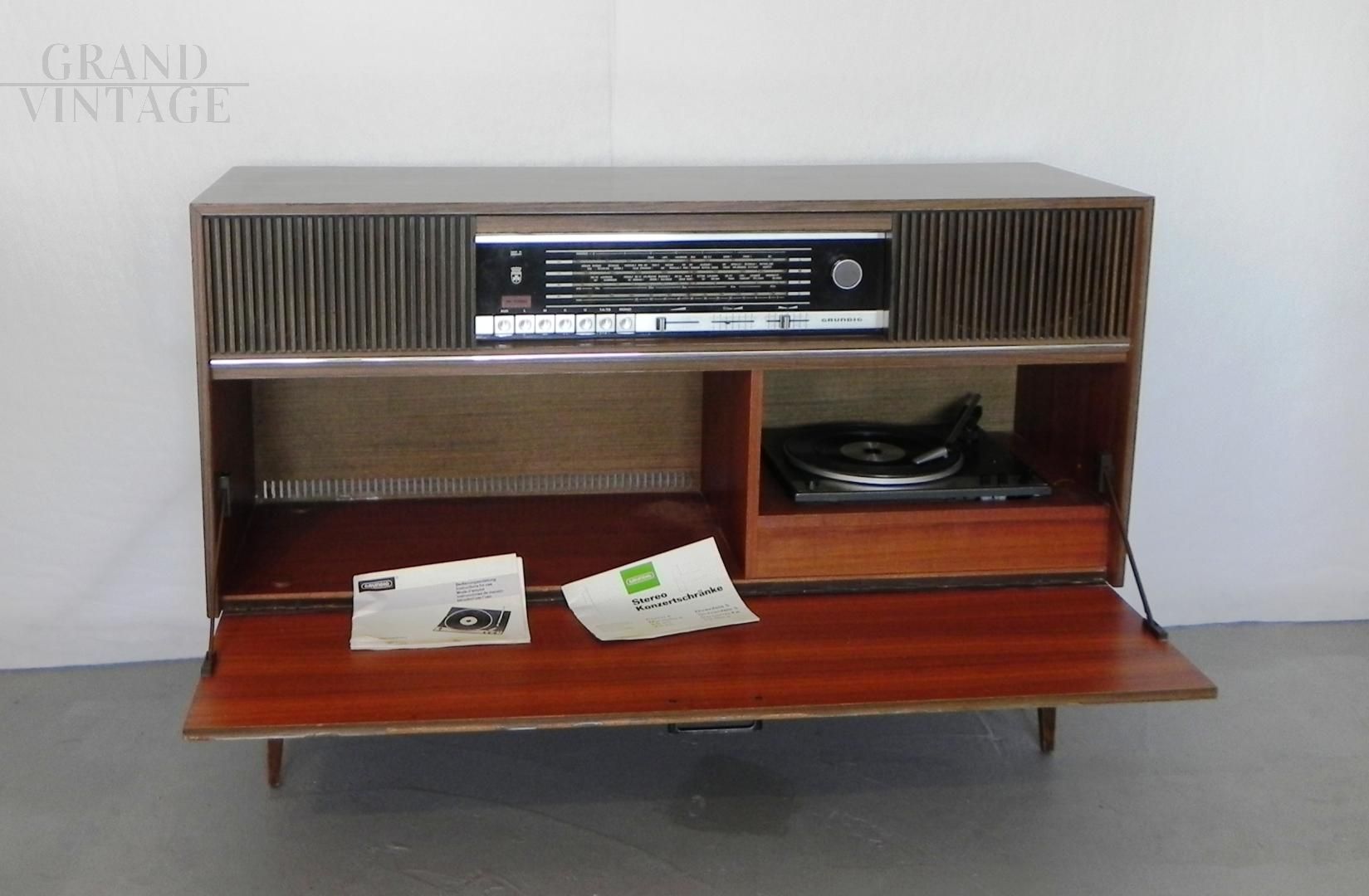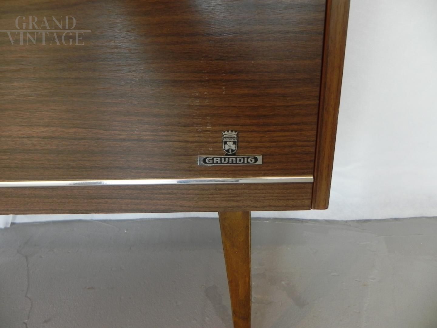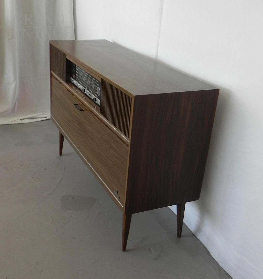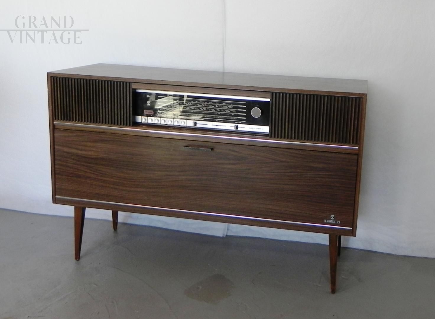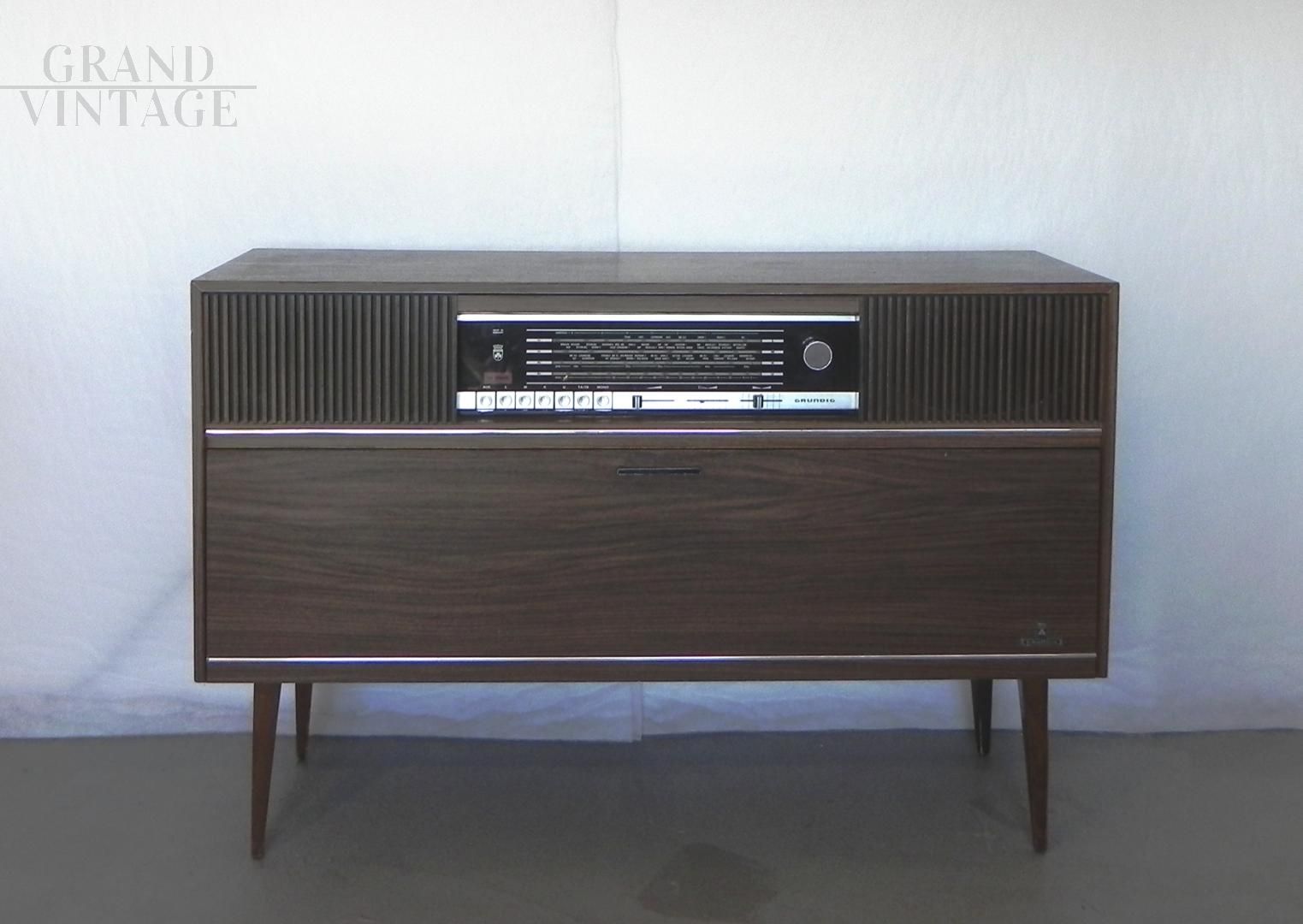 Bellissimo mobile radio giradischi Grunding anni '70, mobile in legno in buono stato, nell'anta frontale manca parte del bordo superiore, come da foto. La radio funziona bene, il giradischi è da riparare. Funziona una sola cassa acustica.