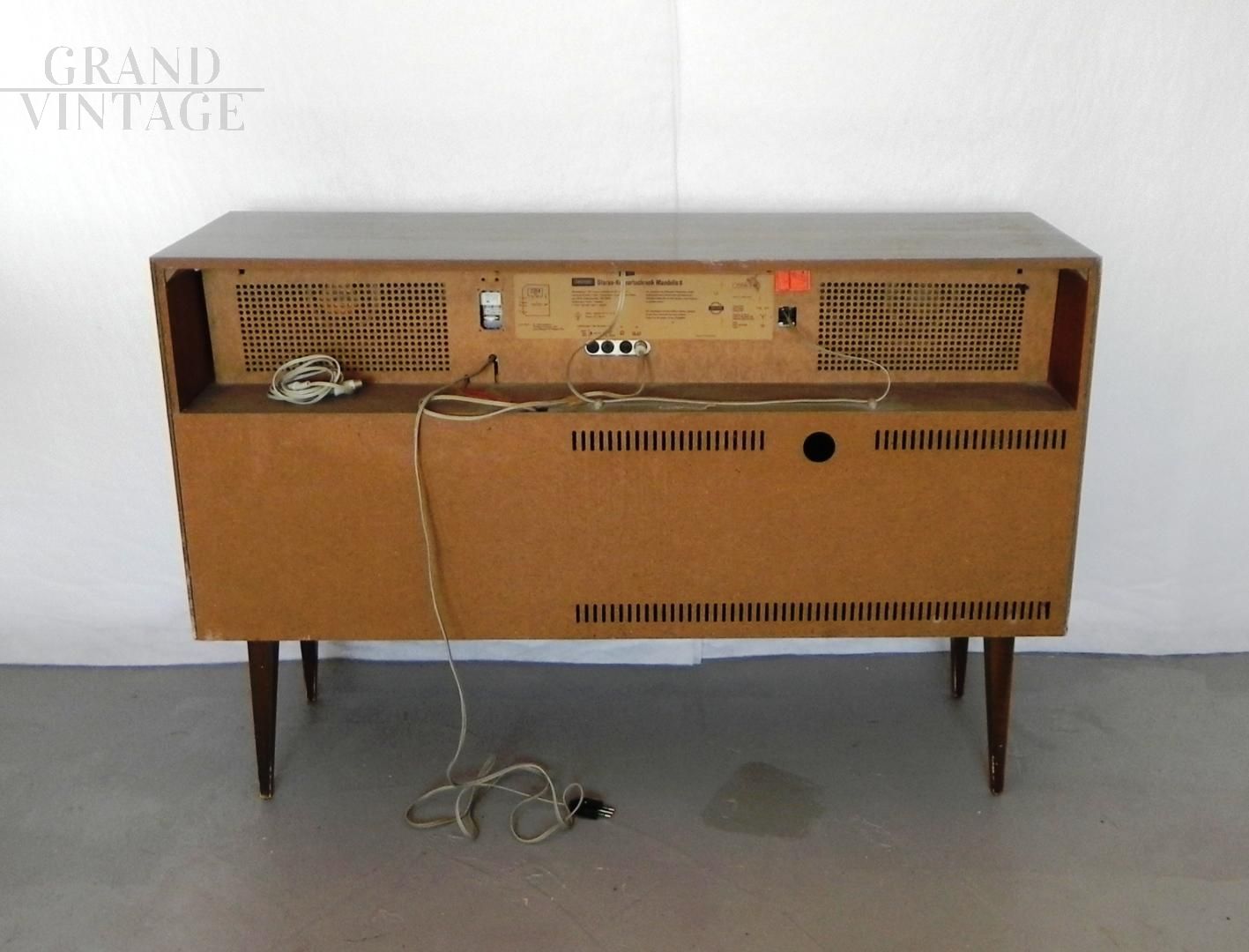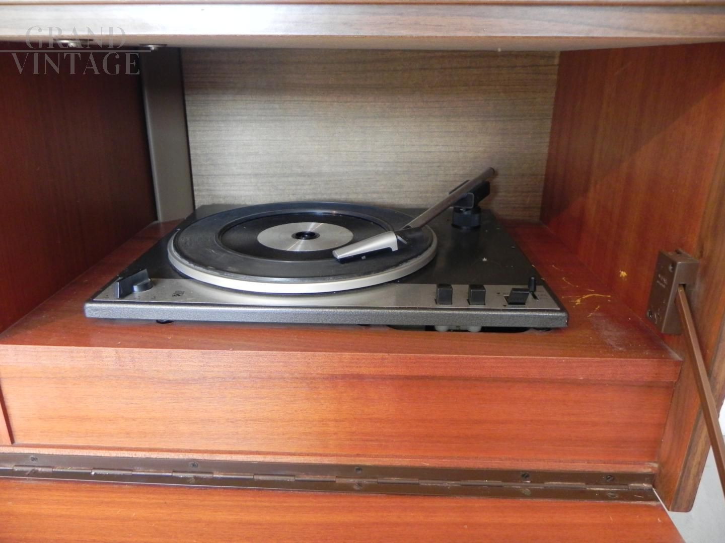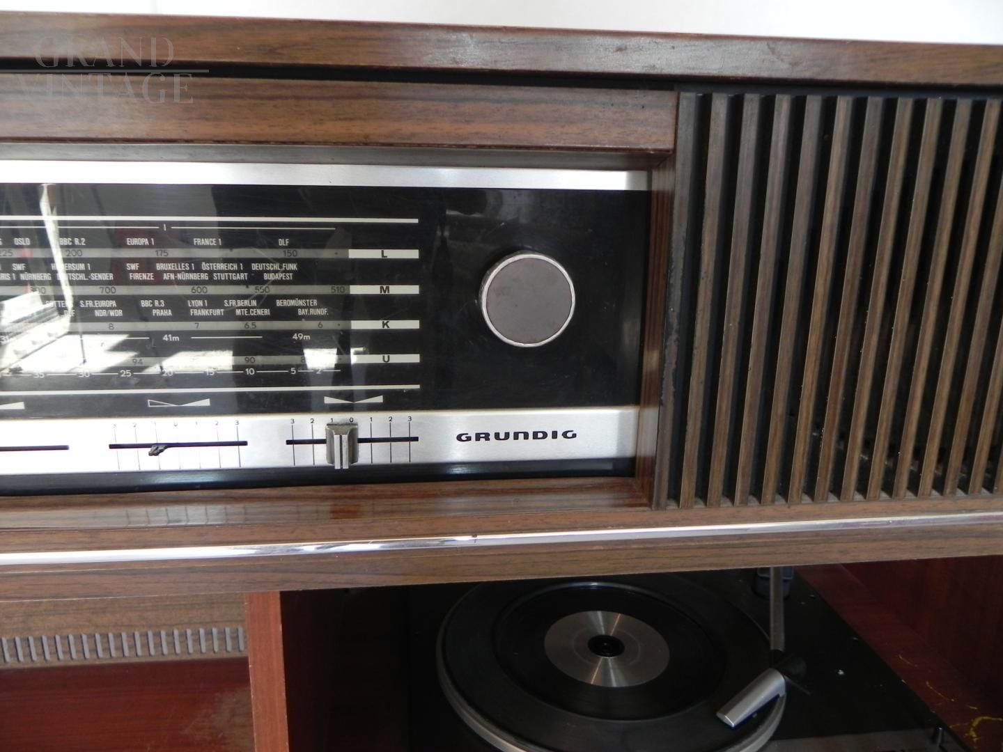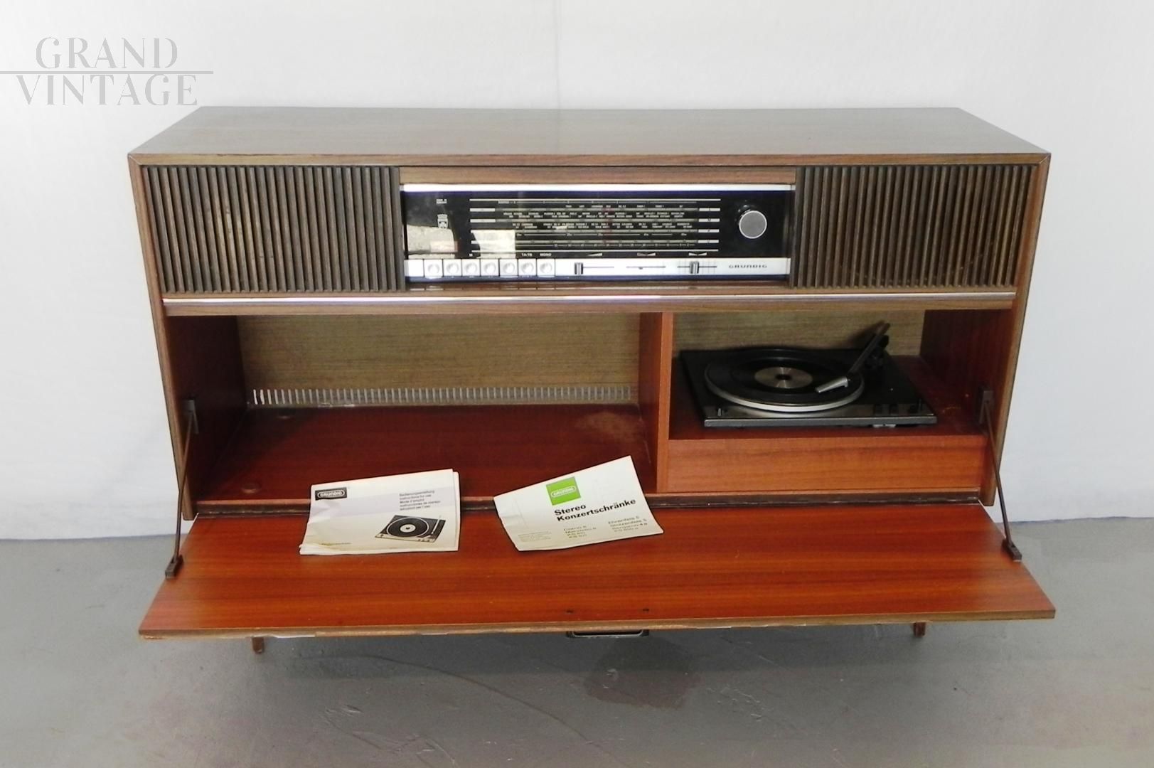 Bellissimo mobile radio giradischi Grunding anni '70, mobile in legno in buono stato, nell'anta frontale manca parte del bordo superiore, come da foto. La radio funziona bene, il giradischi è da riparare. Funziona una sola cassa acustica.