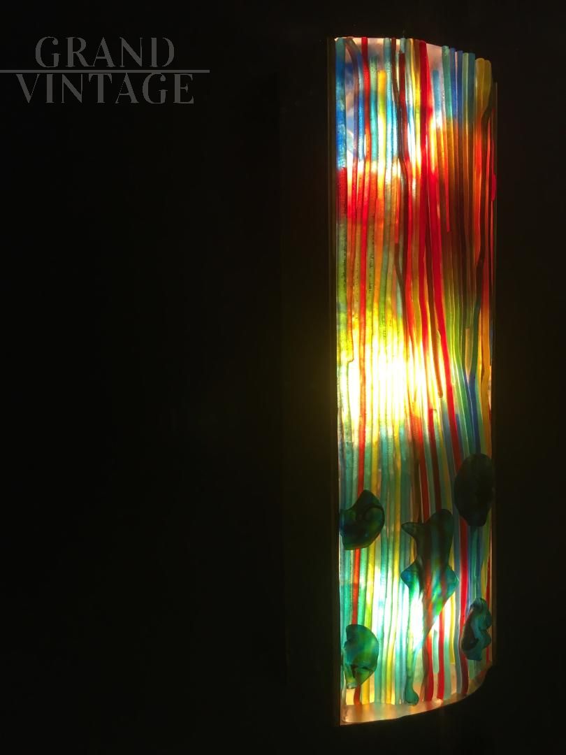 Rara coppia di applique Cenedese in vetro Murano multicolore