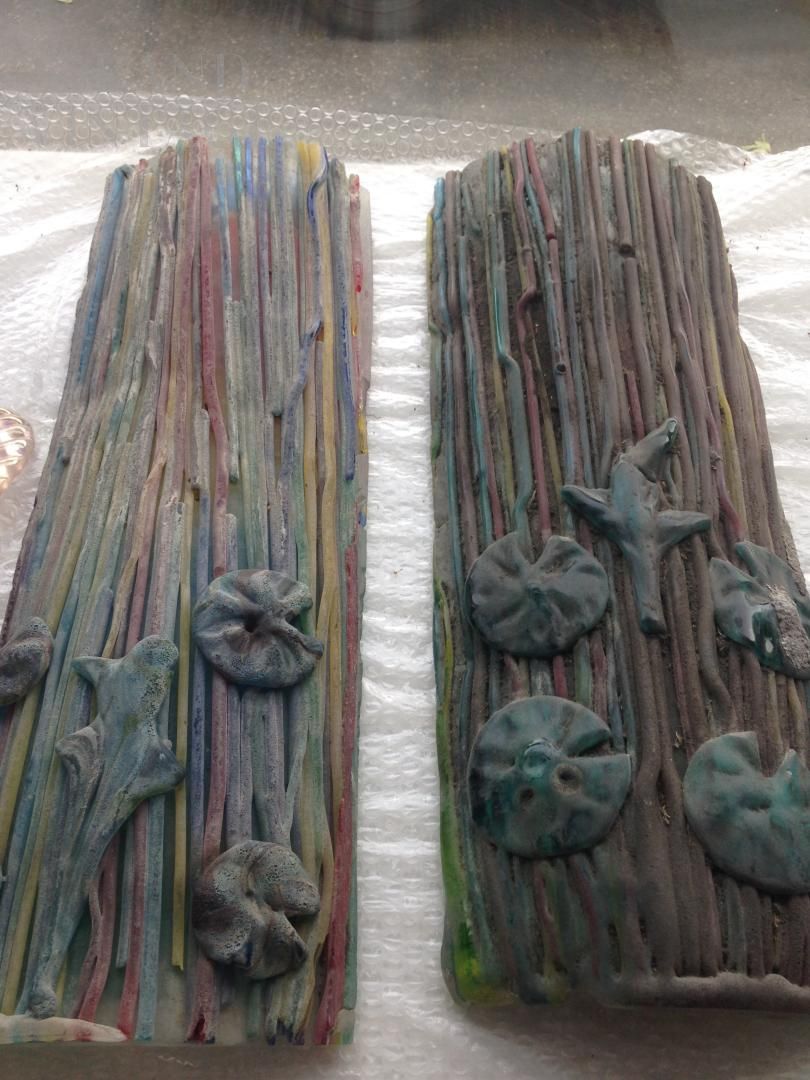 Affascinante e rara coppia di applique della ditta Ars Cenedese, prodotta negli anni '50-'60 in vetro di Murano scavo. Le lampade sono simili, fanno parte della nostra collezione personale e provengono direttamente da Murano, sono costituite da una struttura in ottone con 3 portalampadine E27 e da un fantastico vetro soffiato su stampo, diverse stratificazioni di vetro con tantissimi colori e canne di vetro. Superficialmente c'è un bassorilievo in vetro a tema floreale.