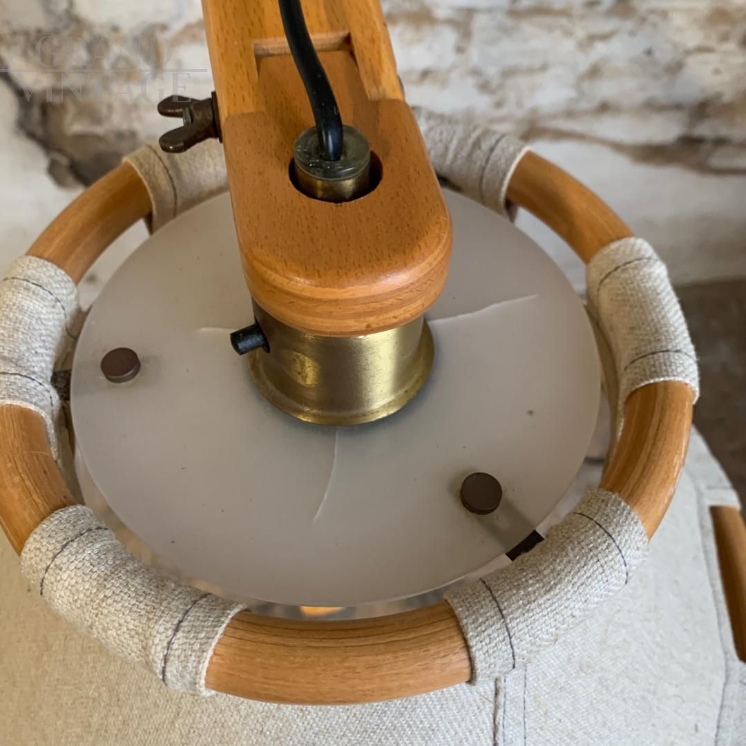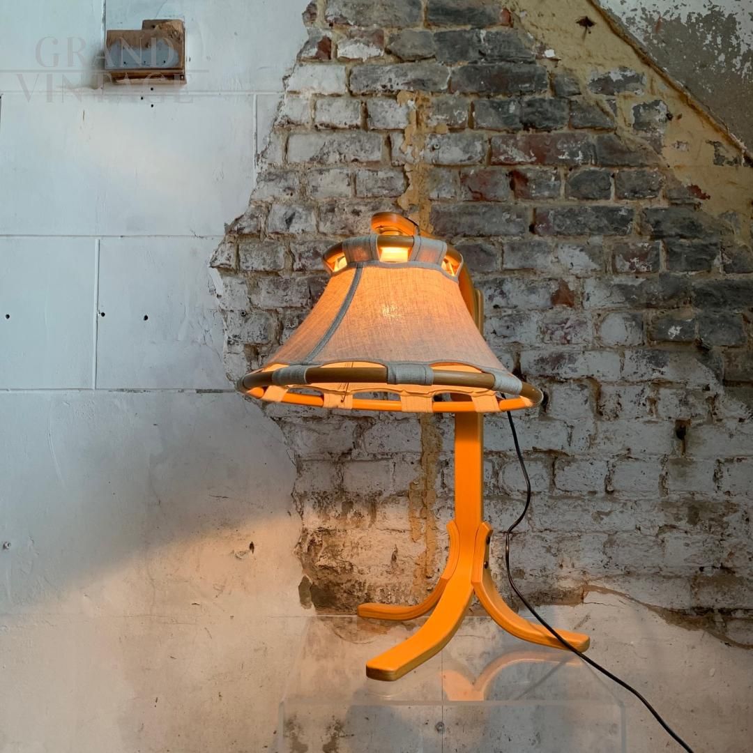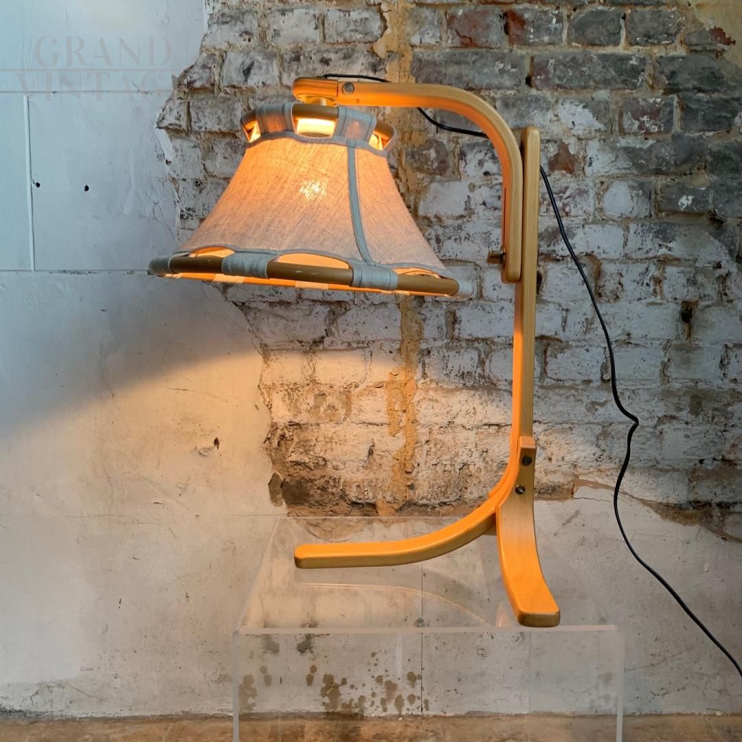 Rara lampada da tavolo Anna di Anna Ehrner per Ateljé Lyktan, Svezia anni '70, con struttura in faggio e paralume in bamboo e tela. La lampada è regolabile in altezza e con paralume girevole, e funziona con spina europea e lampadina di tipo E27, non inclusa. In condizioni molto buone, conserva qualche naturale traccia del tempo, come da foto.