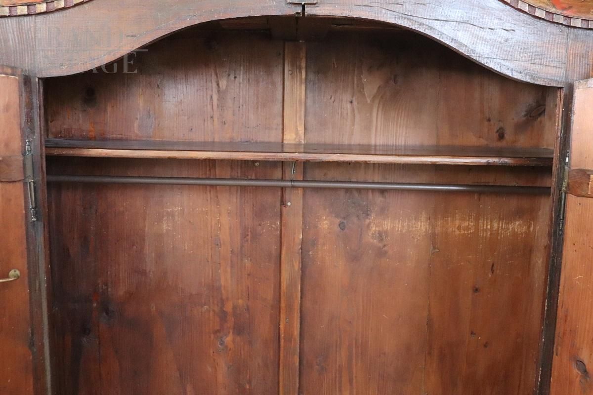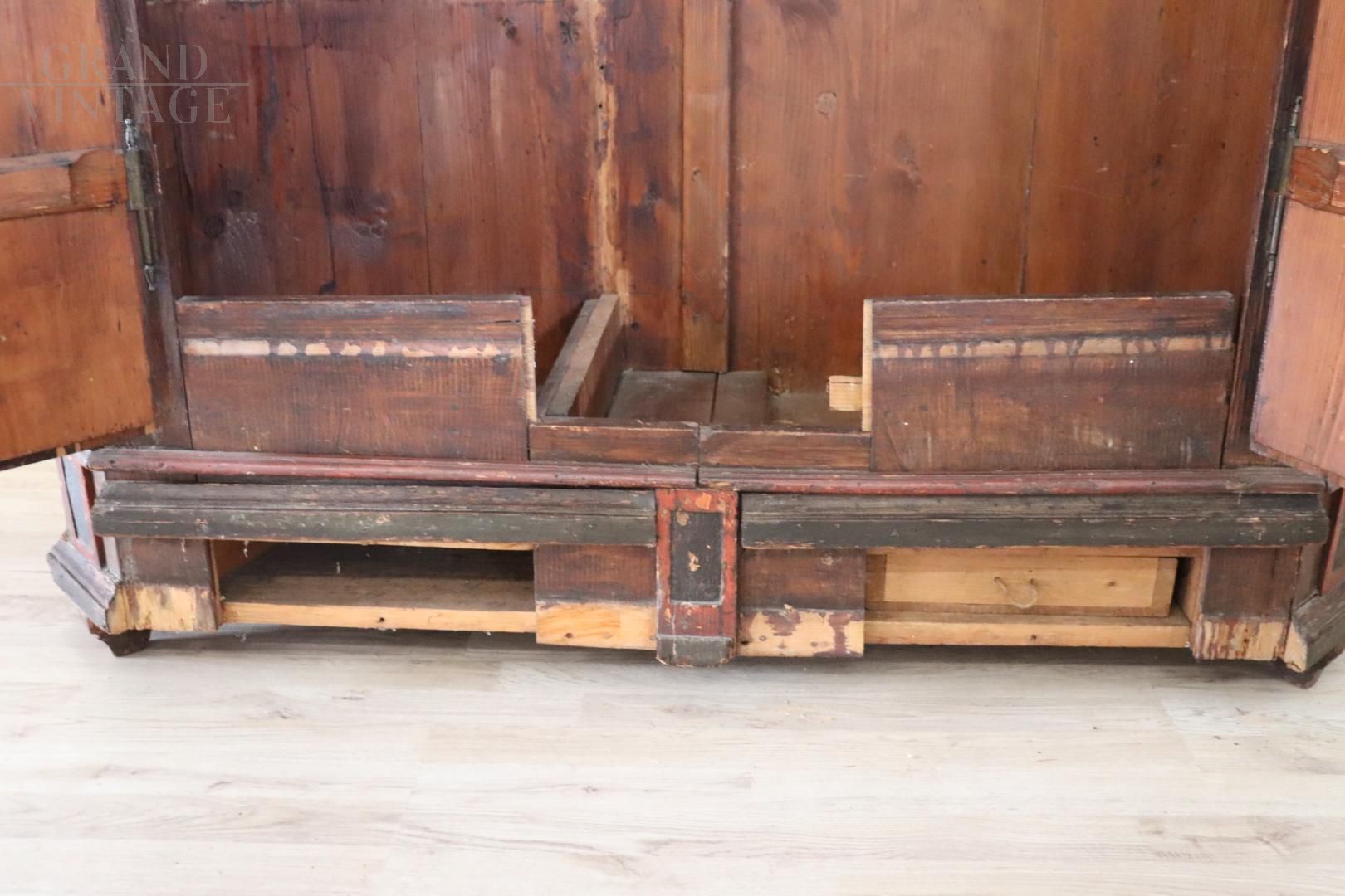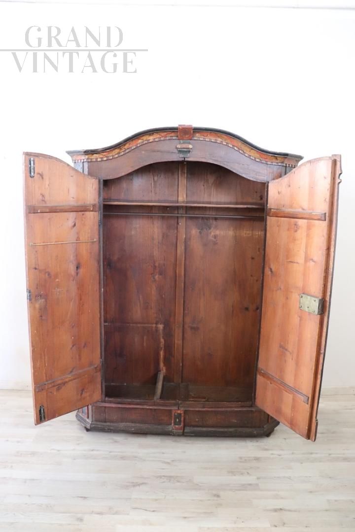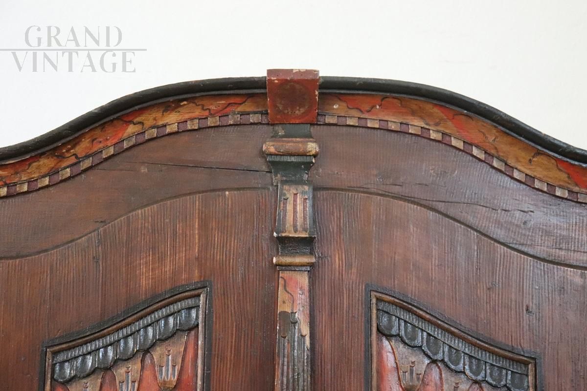 Raro armadio tirolese dell'800 intagliato e dipinto con vani segreti