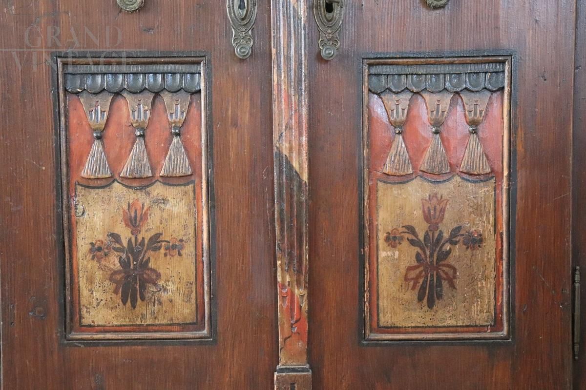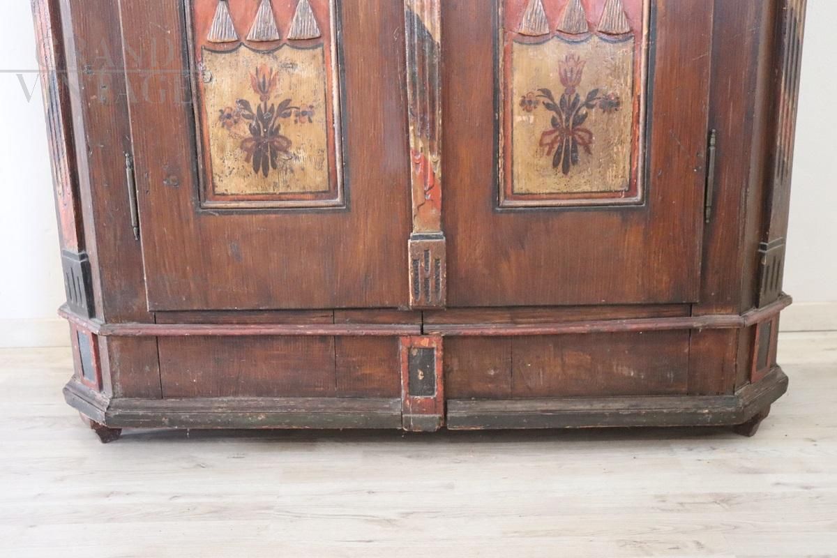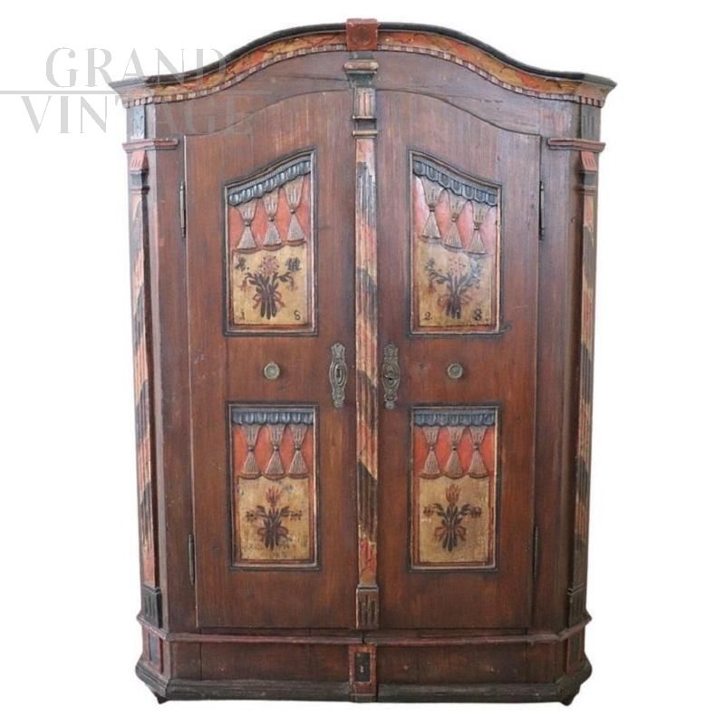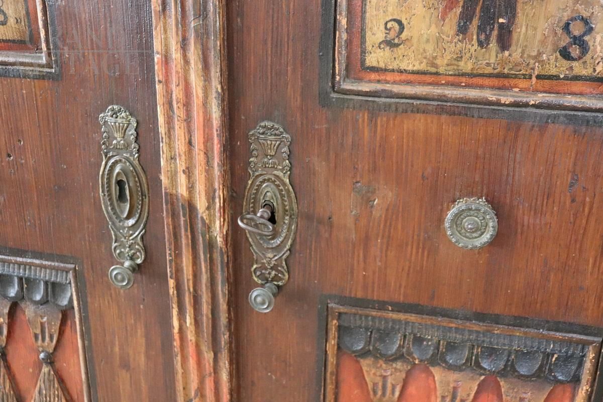 Raro armadio tirolese dell'800 intagliato e dipinto con vani segreti