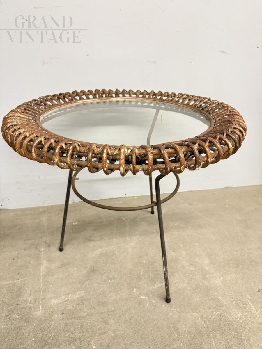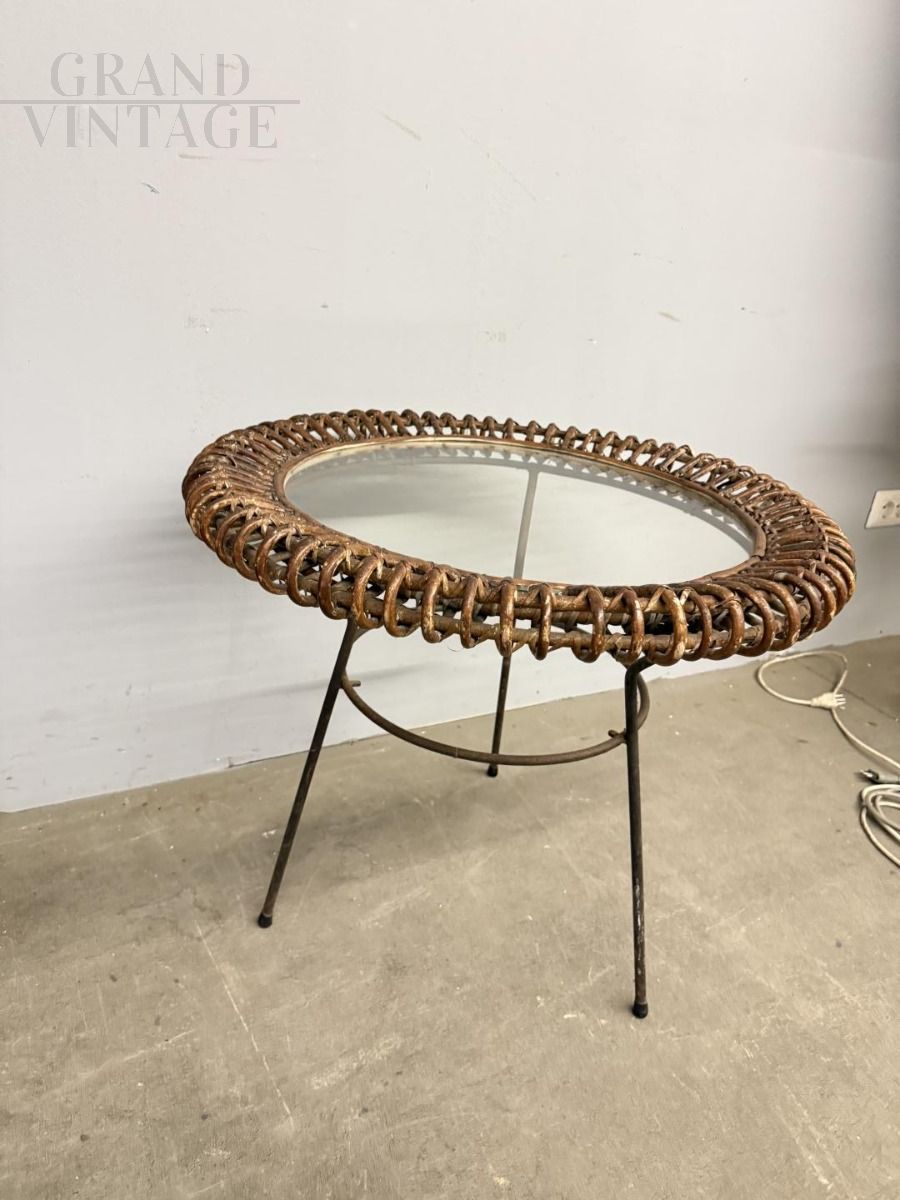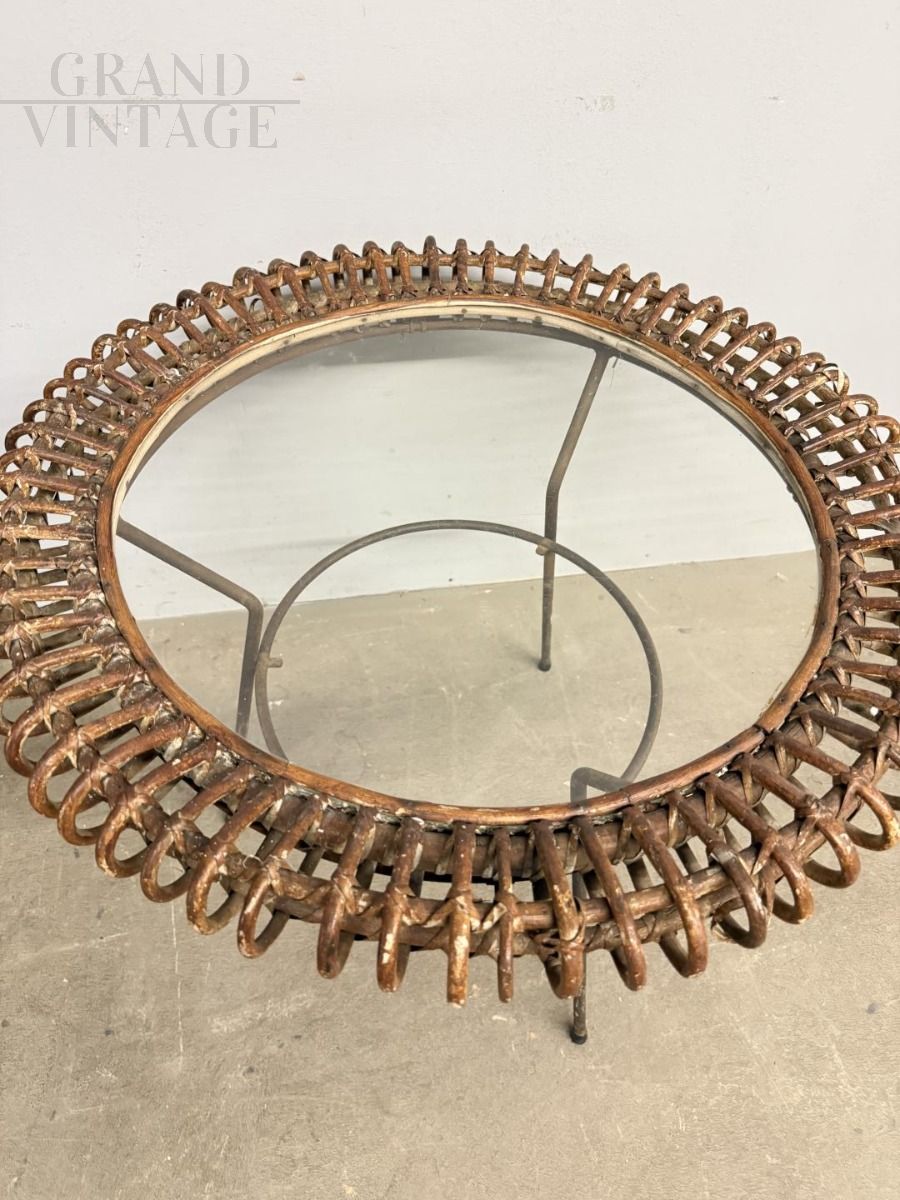 Raro tavolino Bonacina in bamboo, vetro e ferro, anni '50