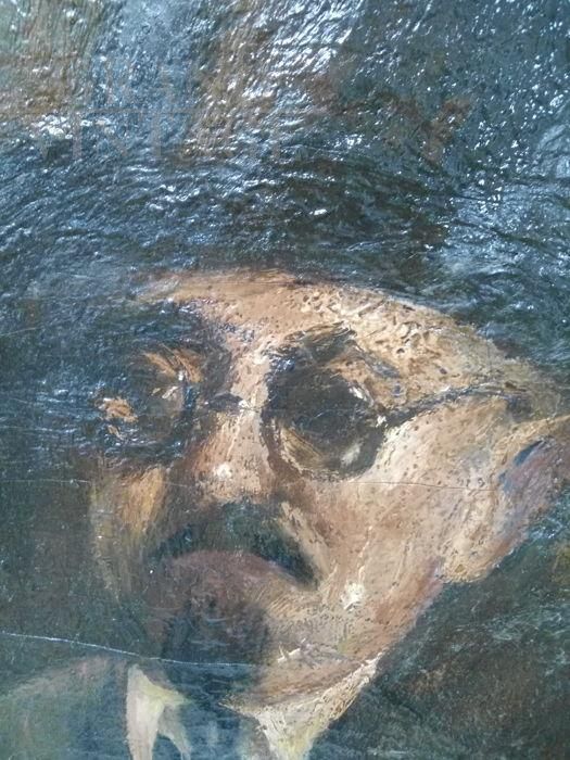 Ritratto di Pirandello di Antonio Bonino, dipinto olio su tela del 1930, firmato, in buone condizioni con tracce di invecchiamento e usura.