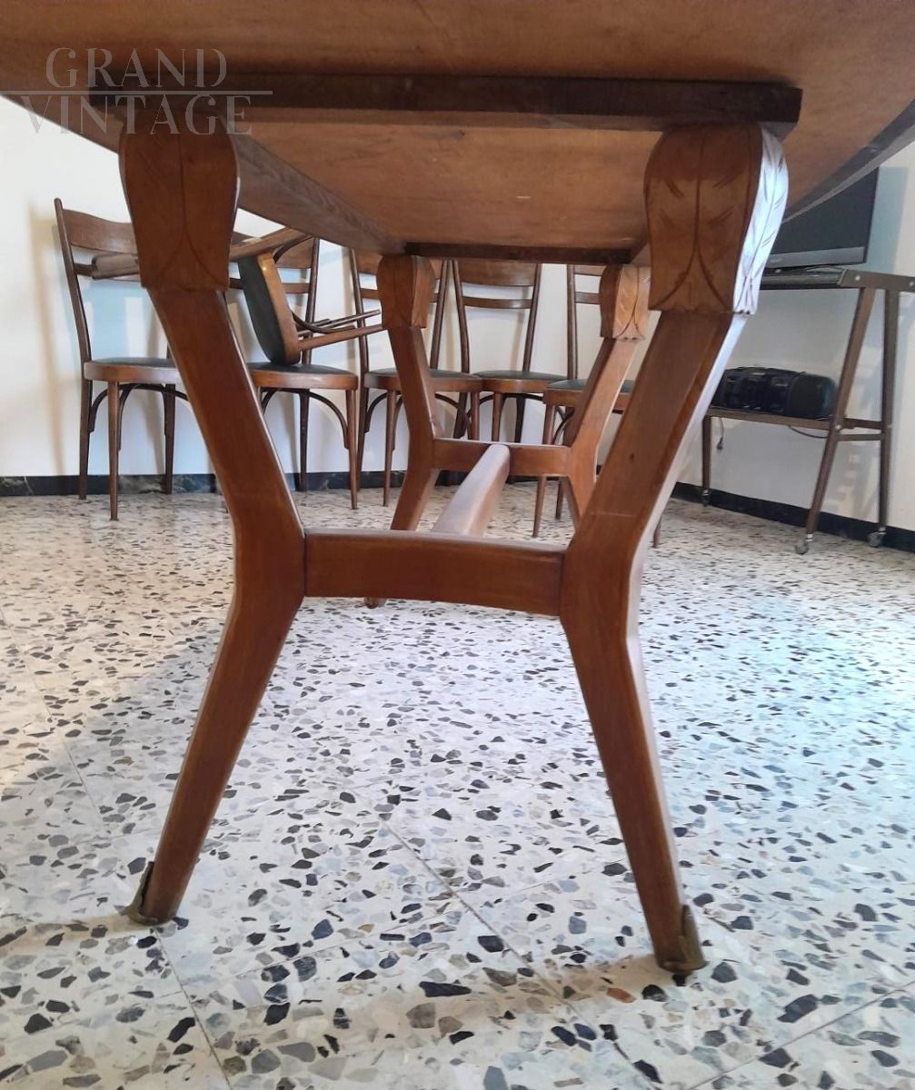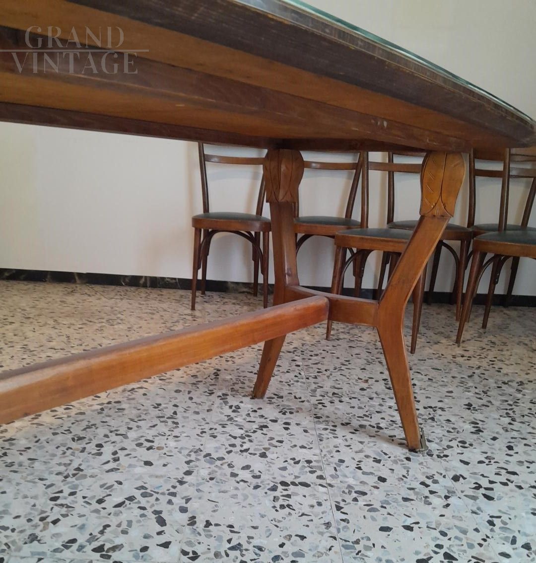 Sala da pranzo vintage italiana con tavolo con piano in vetro e 6 sedie, anni '50
