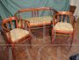 Salotto vintage anni '20 composto da divano e due poltroncine in legno di faggio, ritappezzato con stoffa italiana negli anni '50.