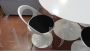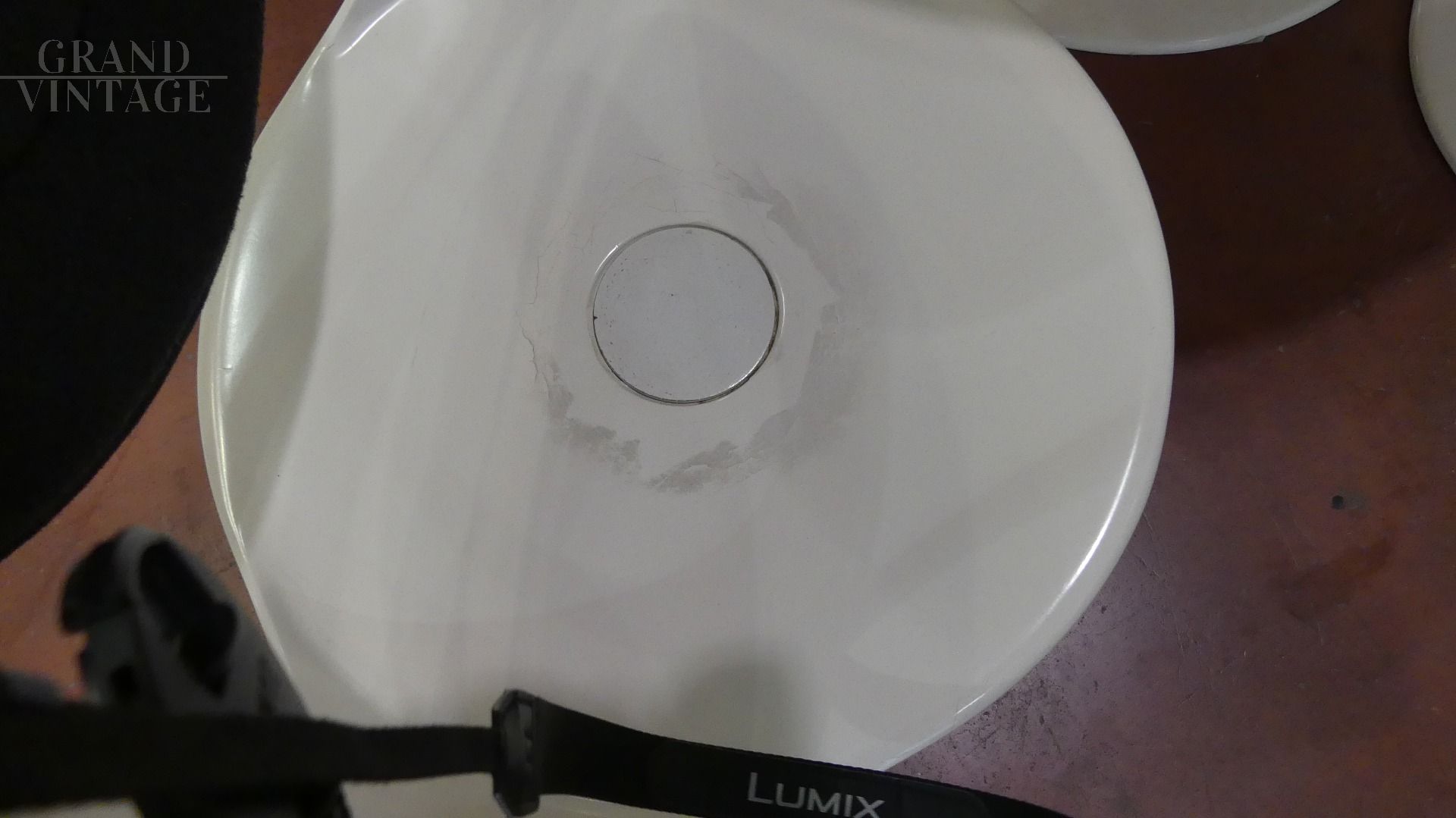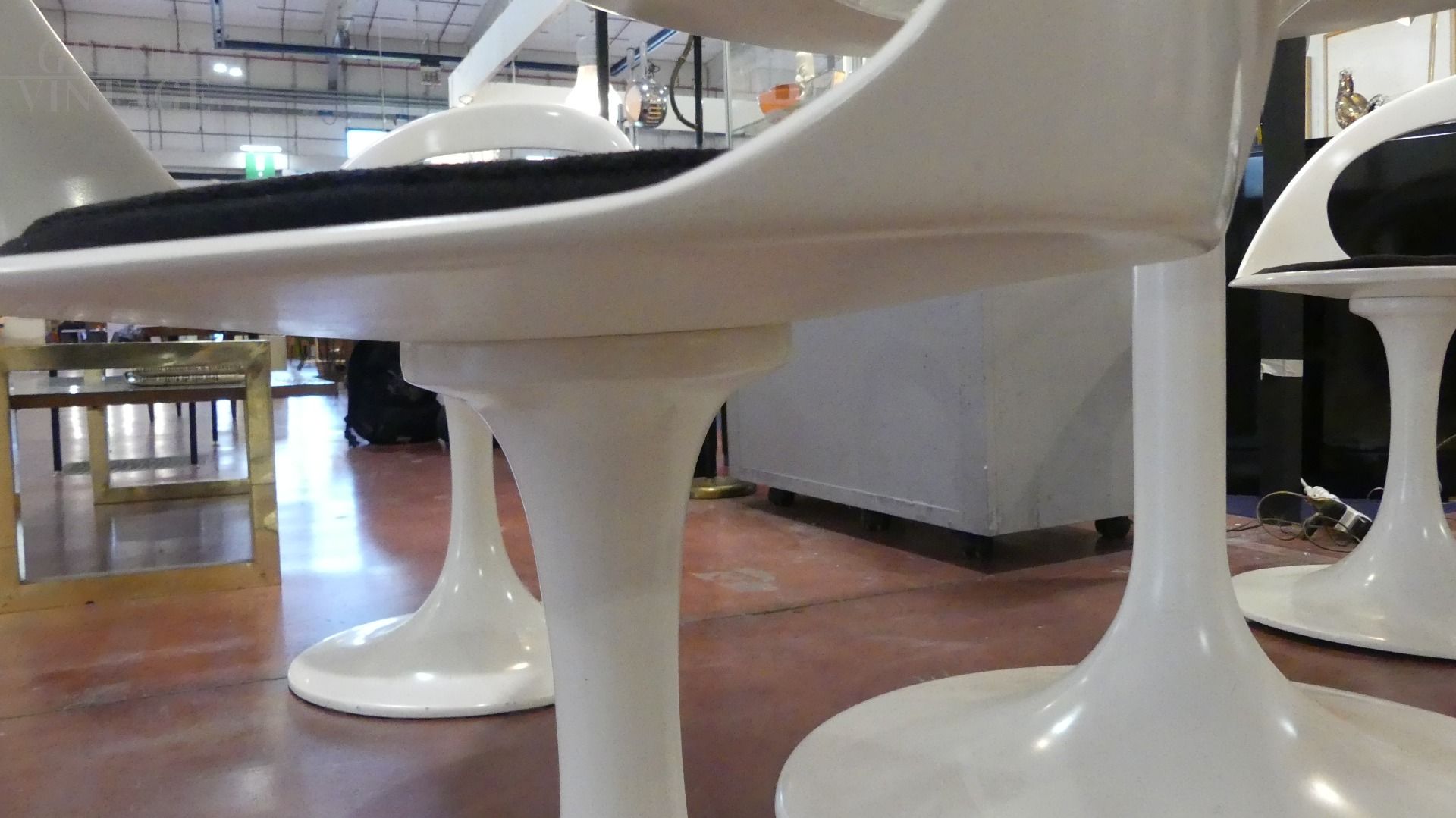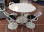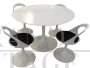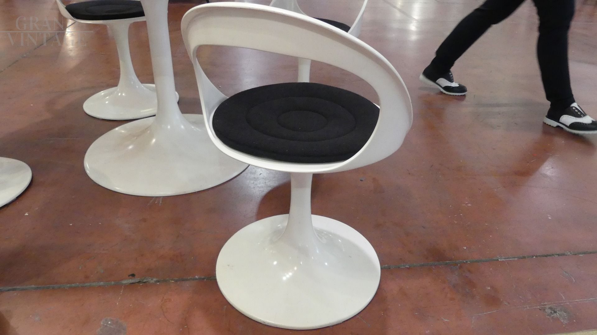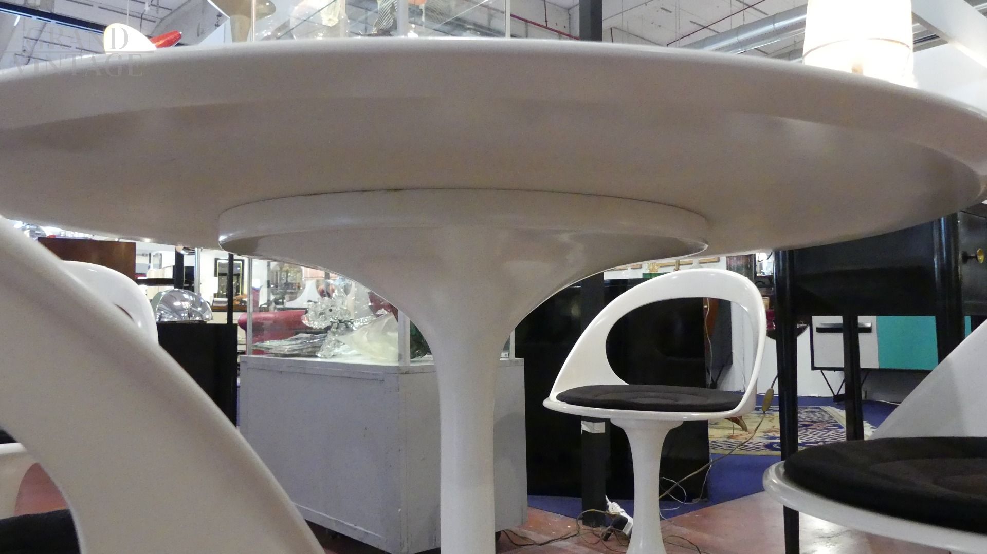 Salotto vintage completo prodotto da Acerbis, composto da tavolo e 4 sedie dalle forme che ricordano lo stile Tulip. Il materiale predominante è il vetroresina bianco.
