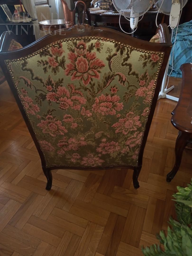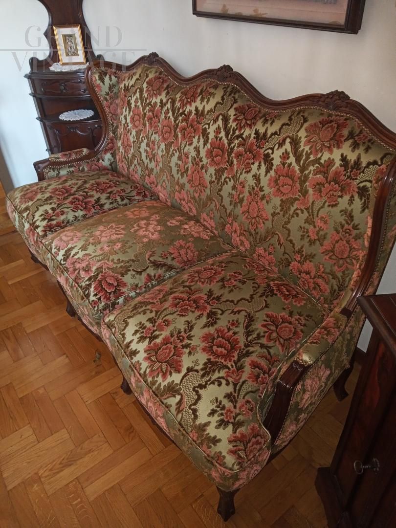 Salotto Bergère con divano e poltrone floreali in stile Luigi XV