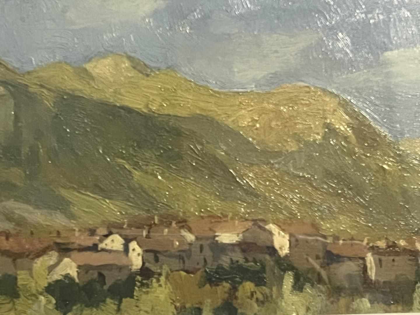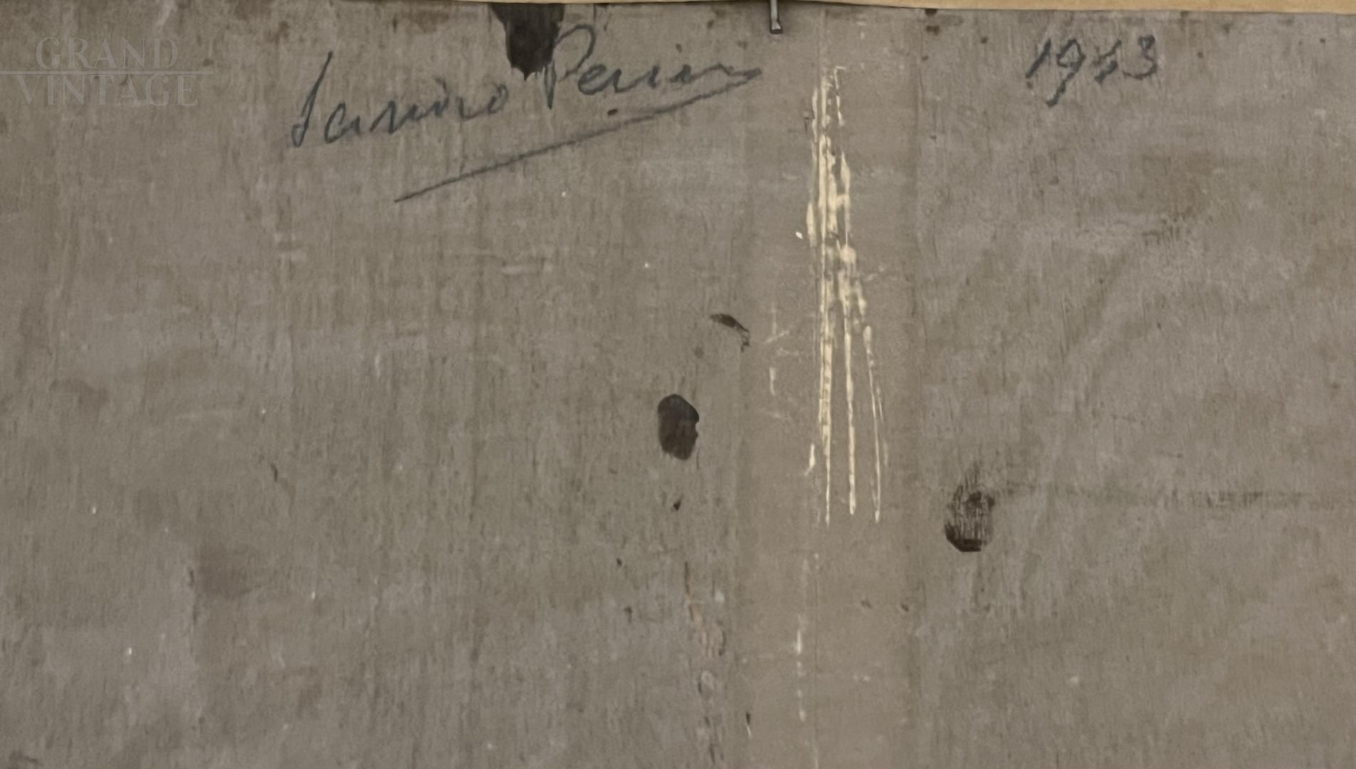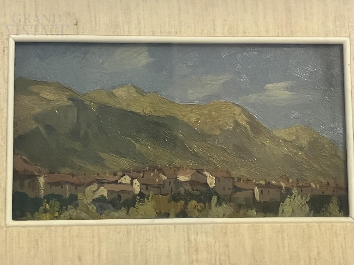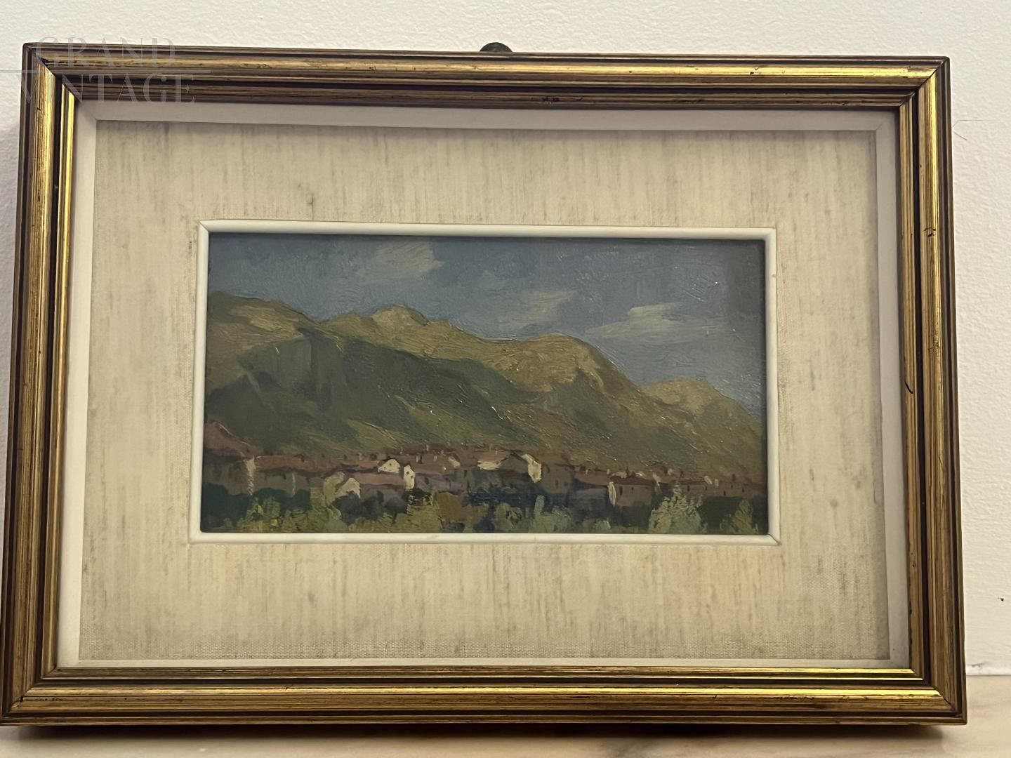 Dipinto realizzato ad olio su tavola dal pittore milanese Sandro Perini, raffigurante una veduta dei monti della Brianza. L’opera è datata e firmata dall’artista sul retro, si presenta in ottime condizioni di conservazione e non necessita di alcun intervento di restauro.