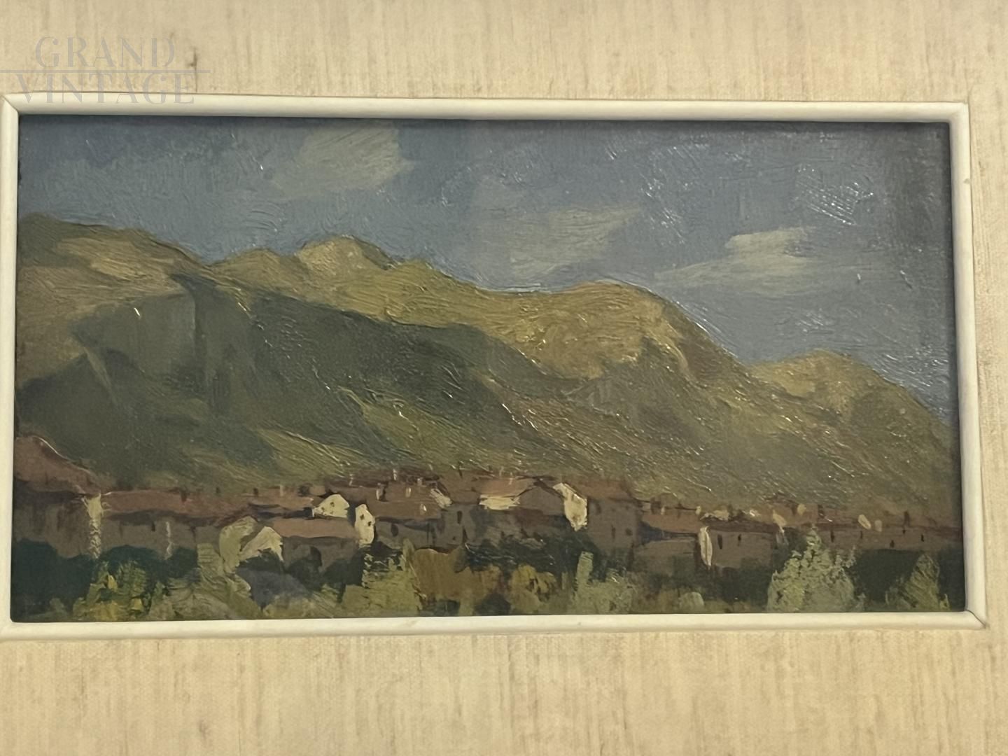 Sandro Perini - dipinto con paesaggio brianzolo, olio su tavola, 1943