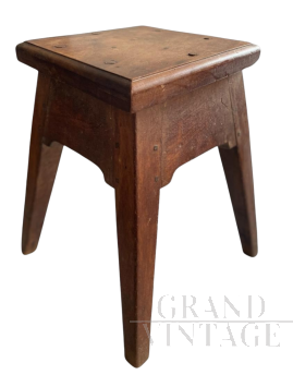 Sgabello rustico vintage in legno scuro di abete, 1950