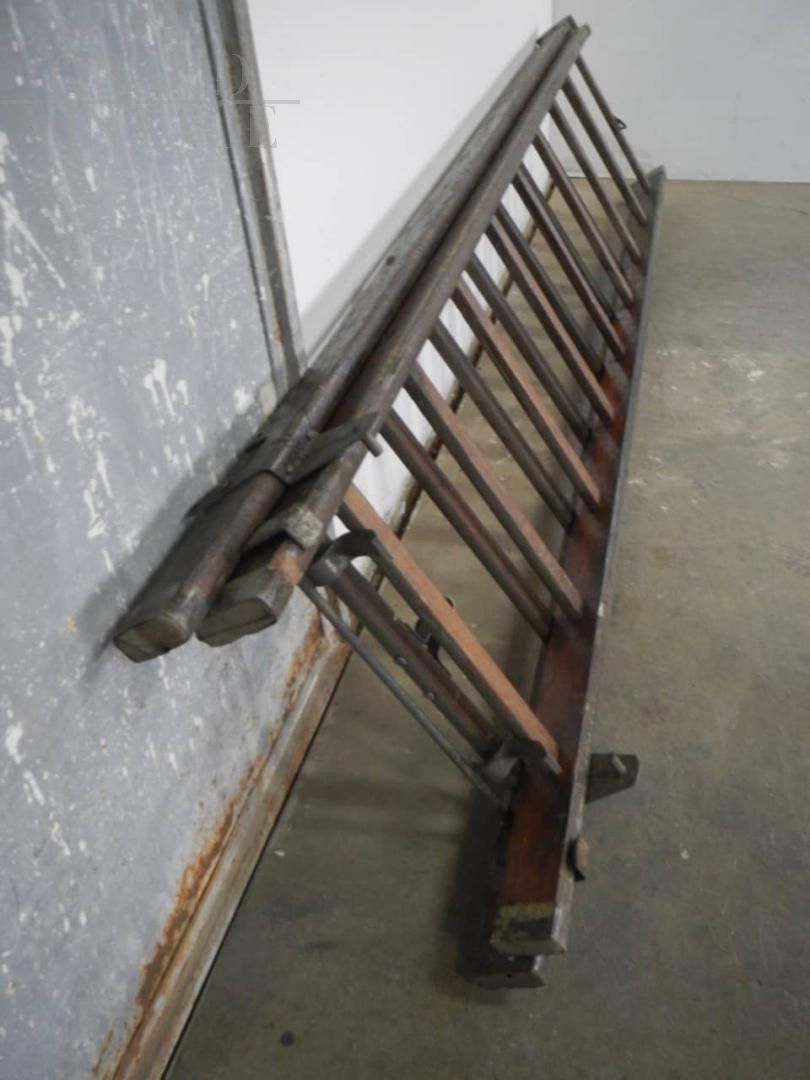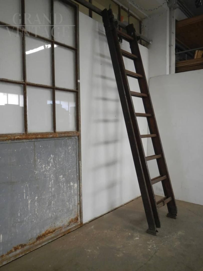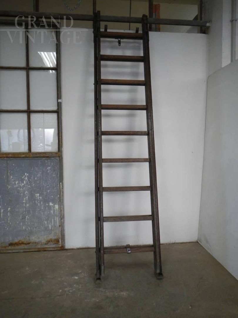 Scala vintage allungabile in legno con rifiniture in ferro, prodotta da IPPIS.
