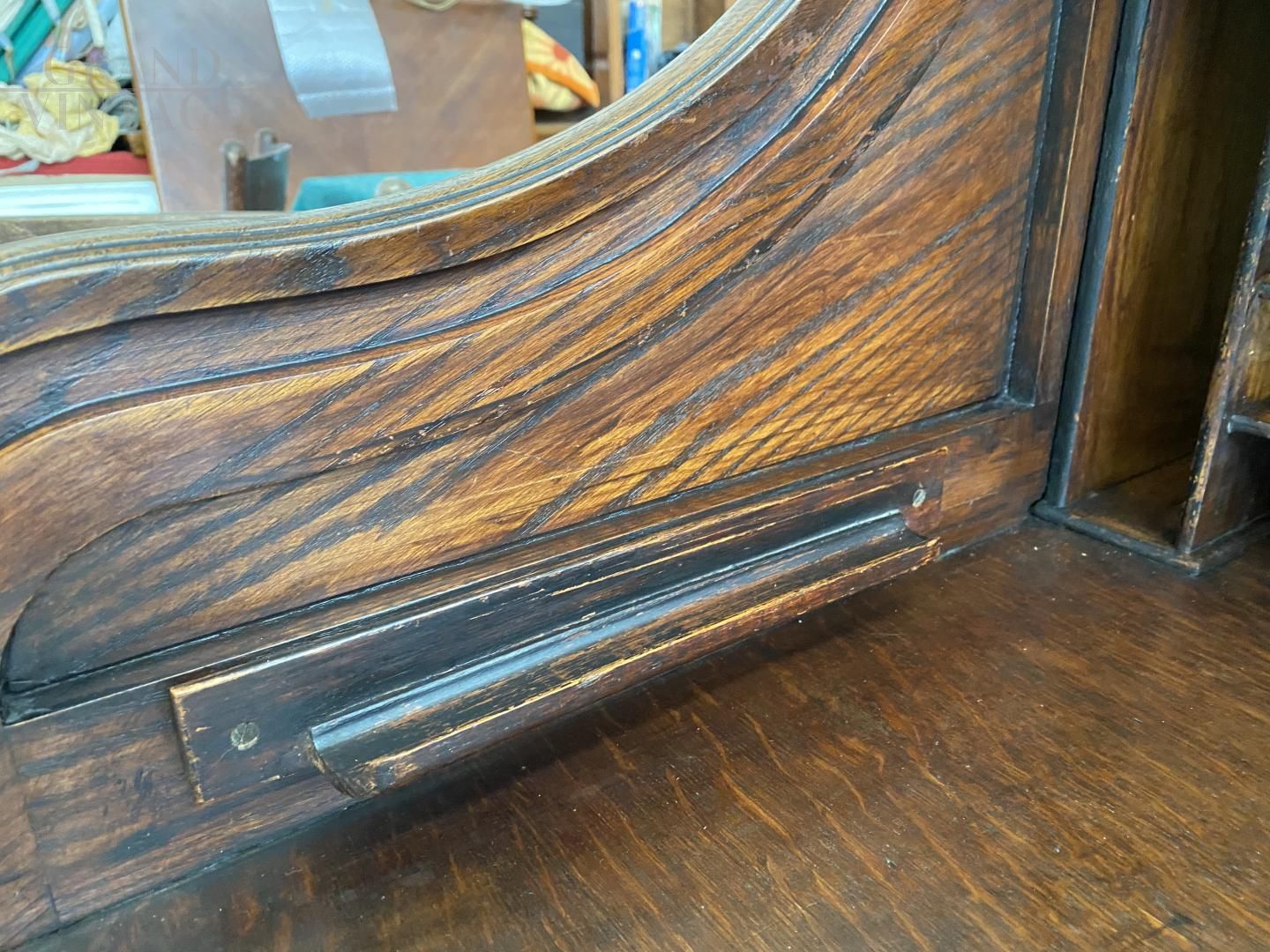 Scrittoio a rullo, roll top desk americano in rovere massiccio di provenienza americana, in condizioni perfette, marchiato dalla ditta Feige Desk Company, con chiusura dei cassetti automatica a serranda abbassata e feritoia per inserimento lettera a scrittoio chiuso dal capoufficio.