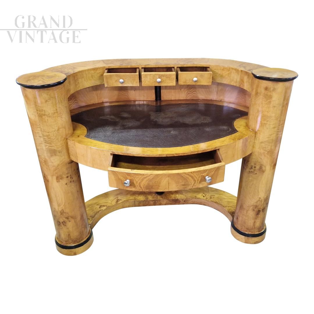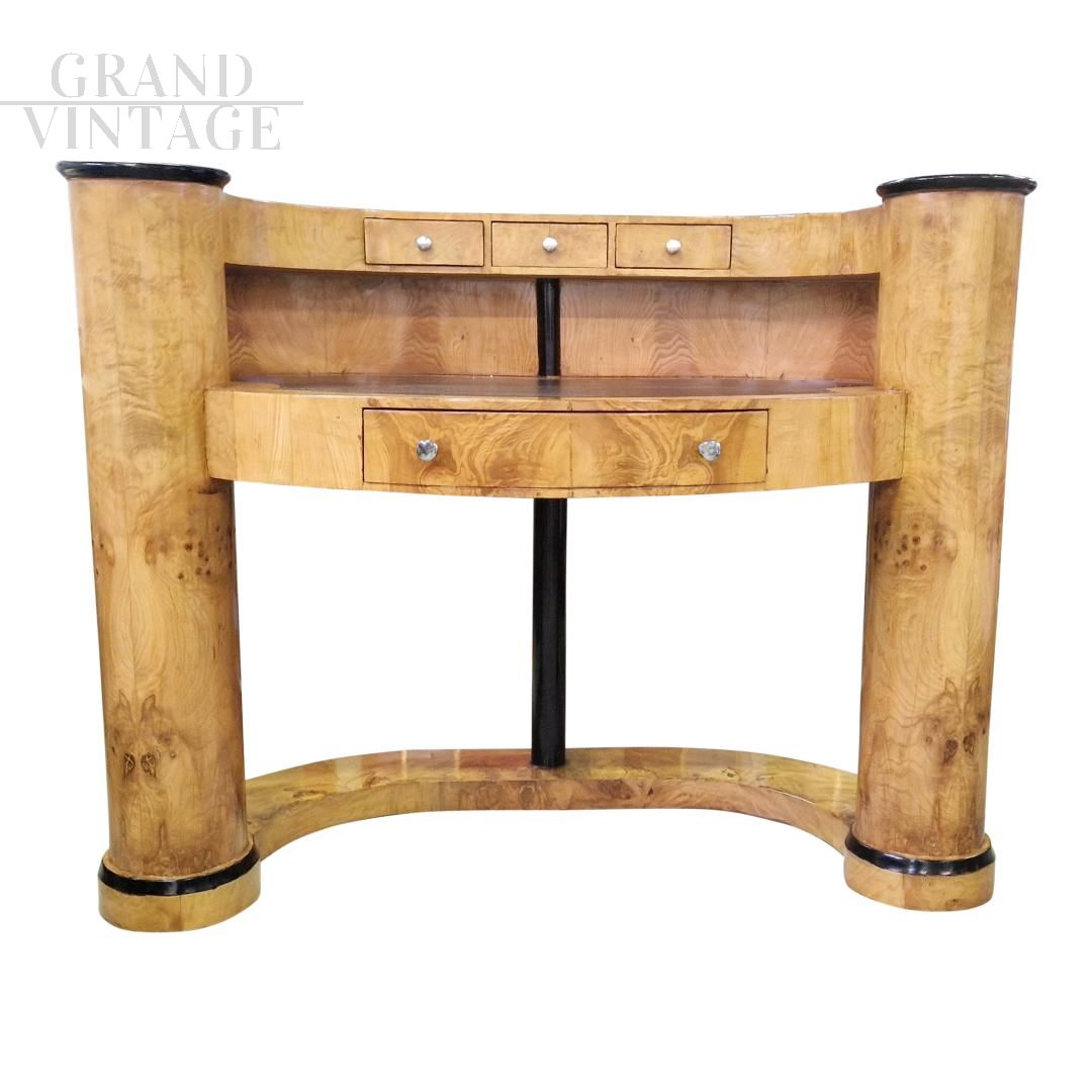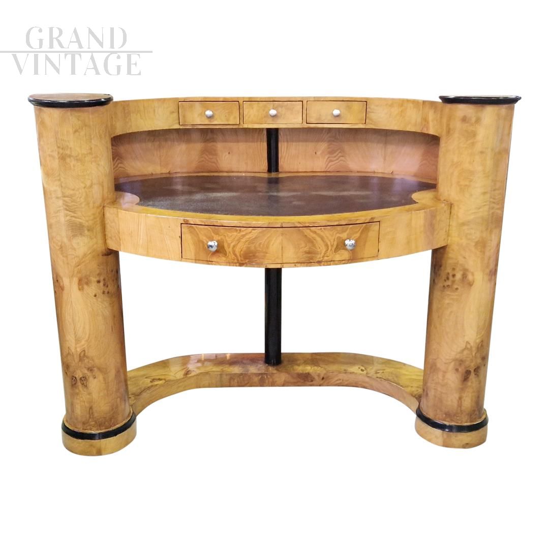 Scrittoio da reception di linea Art Déco in radica di betulla