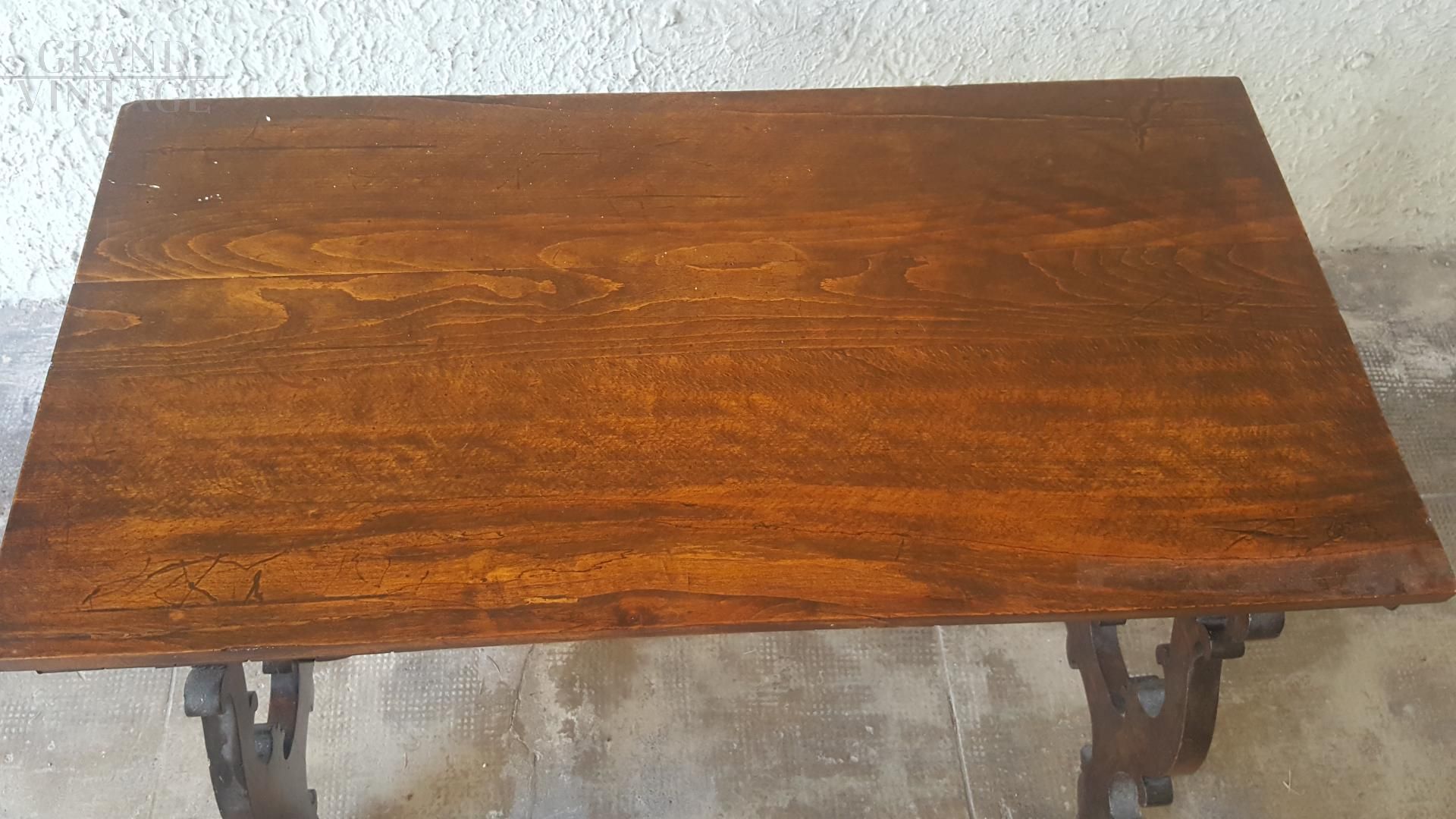 Bel tavolino scrittoio fratino antico in noce di faggio con gambe a lira, dei primi del '900.