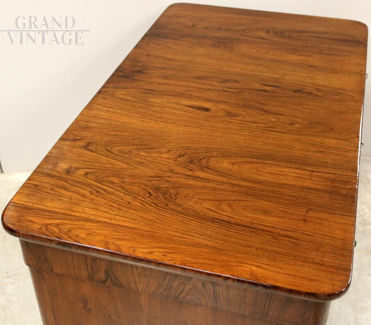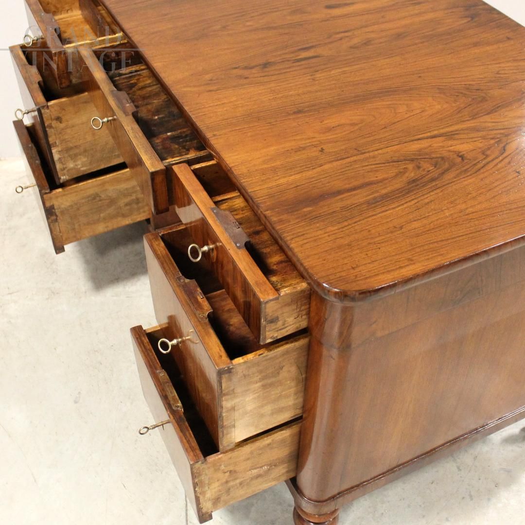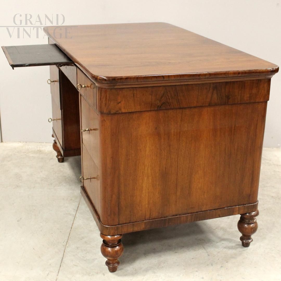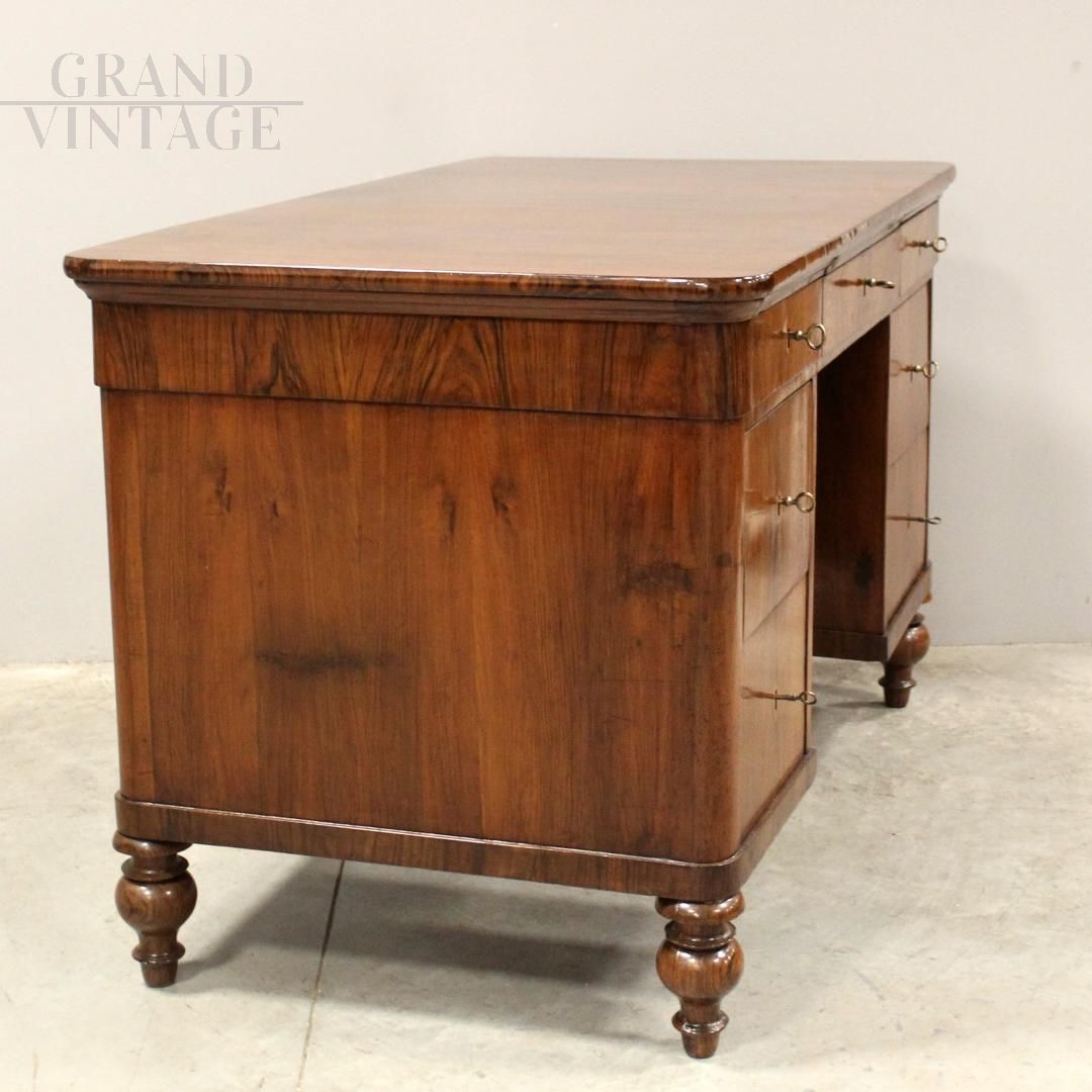 Scrivania antica Luigi Filippo in noce con grandi cassetti, Italia '800