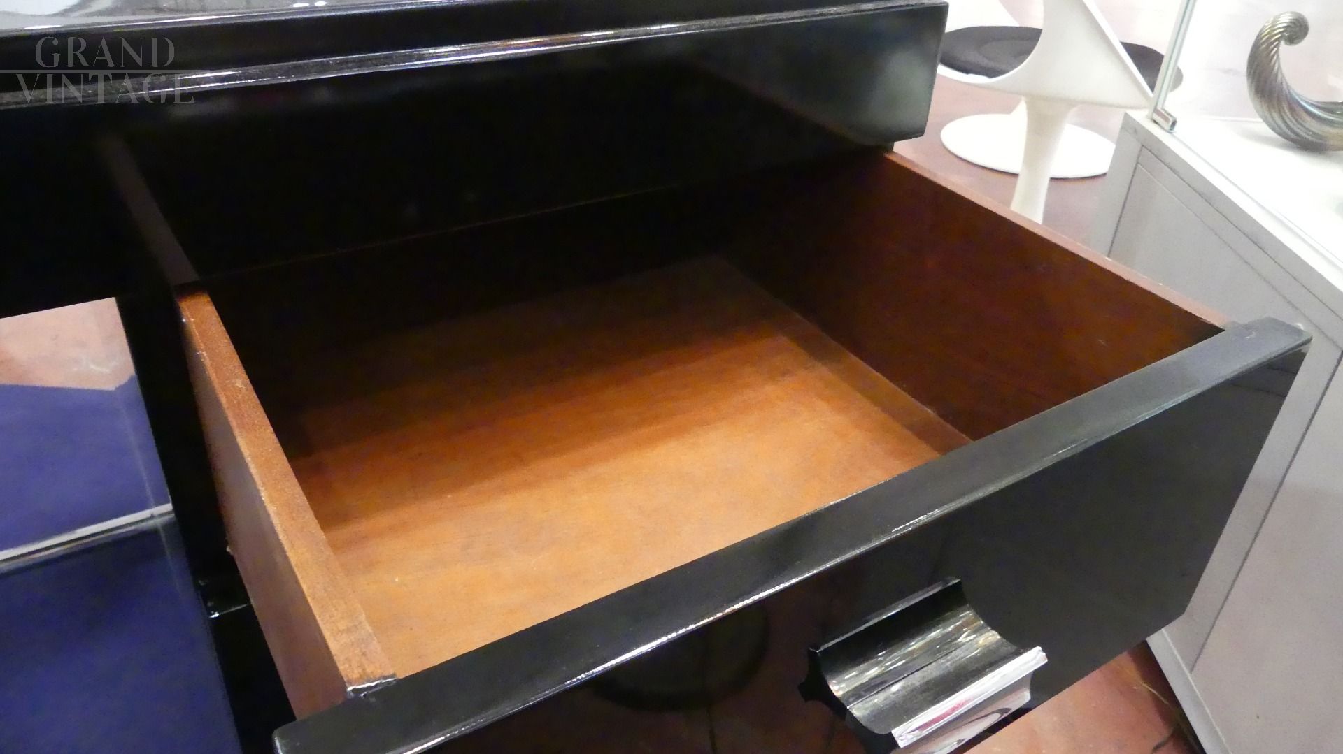Scrivania déco anni '40 in legno laccato nero