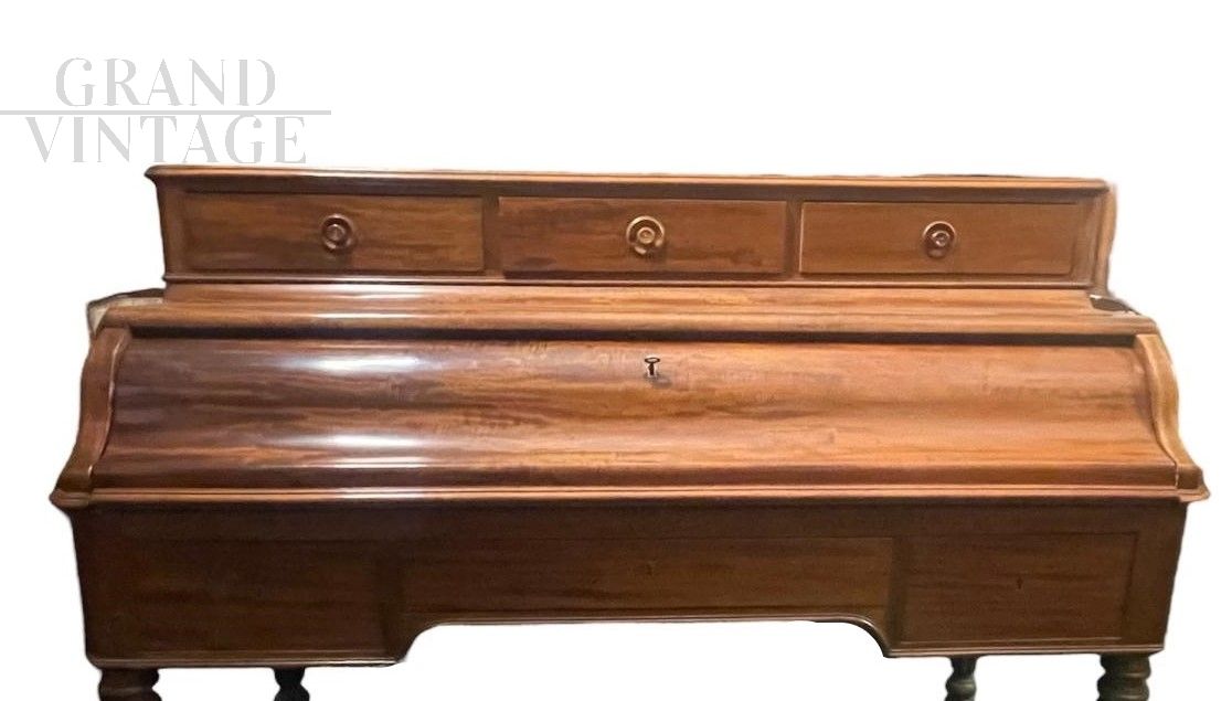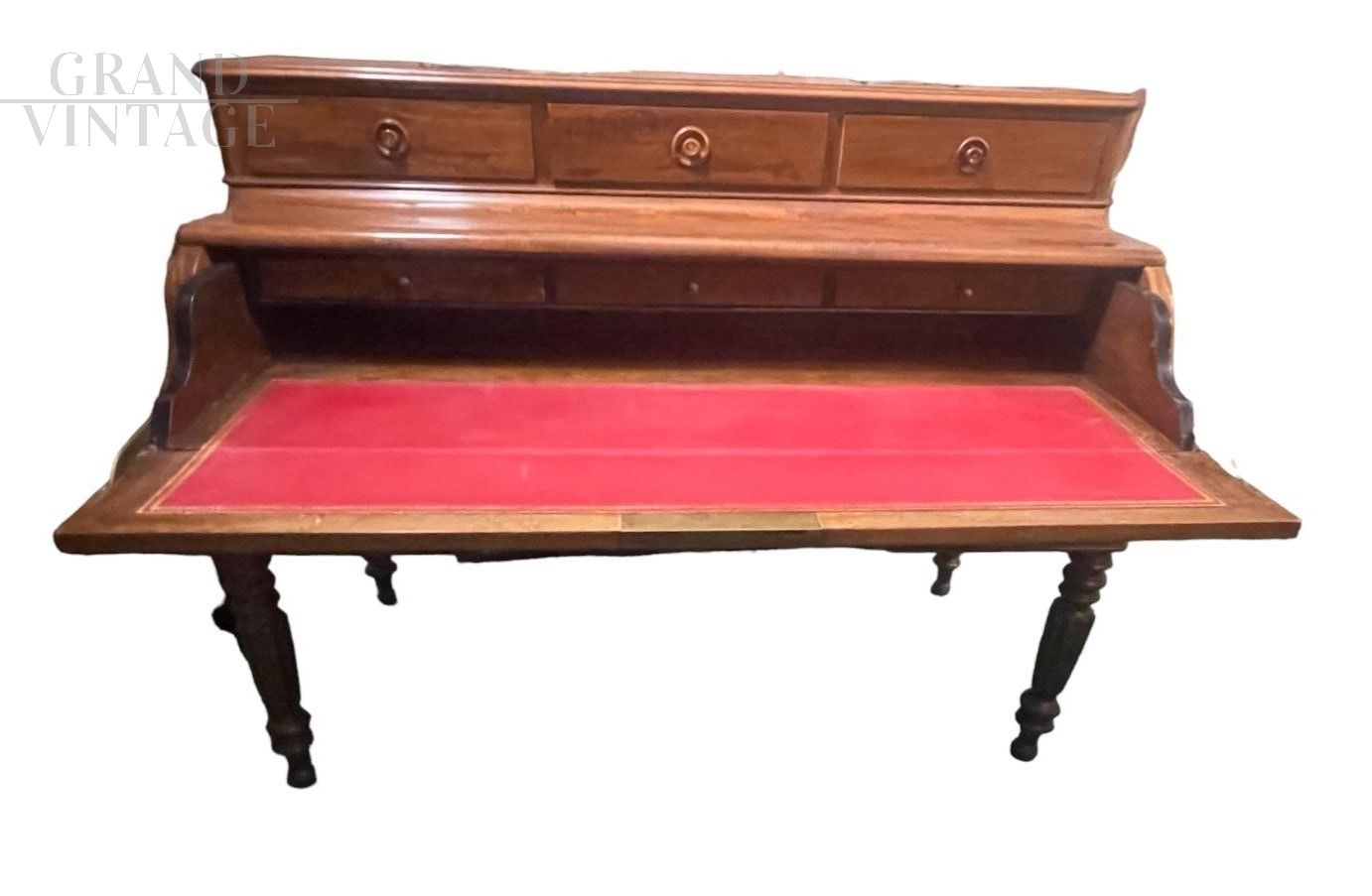 Scrivania Francese antica a ribaltina in mogano con cassetti, della metà dell'800, in condizioni ottime.