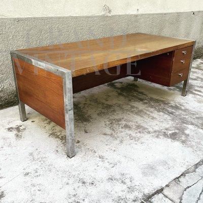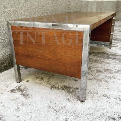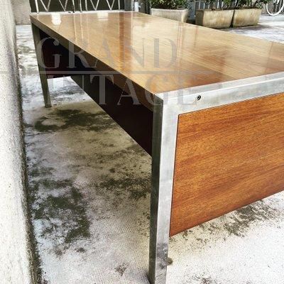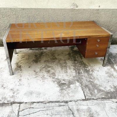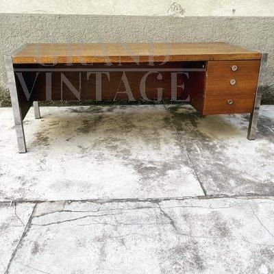 Scrivania Tecnika di Ettore Sottsass per Poltronova, Firenze anni '70, con due cassetti, in legno impiallacciato e con profili e dettagli in acciaio cromato. La scrivania è stata usata fino a poco tempo fa, pertanto presenta qualche naturale difetto estetico. Strutturalmente, la scrivania è solida e completa.