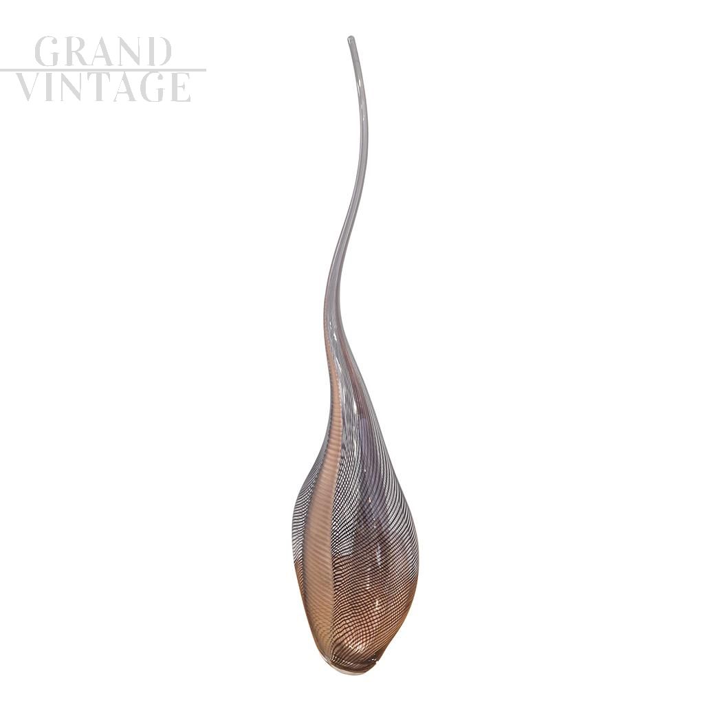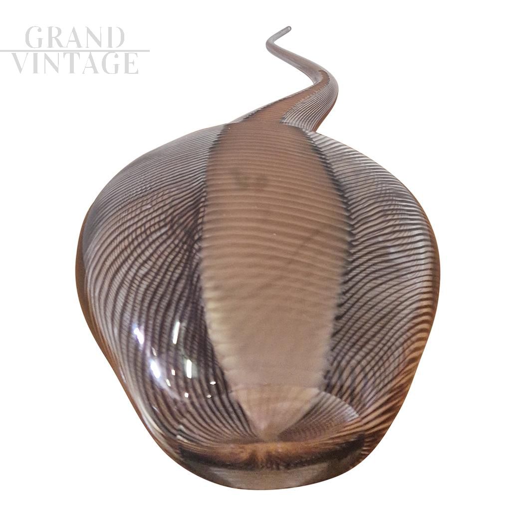 Scultura Colizza in vetro di Murano marrone striato