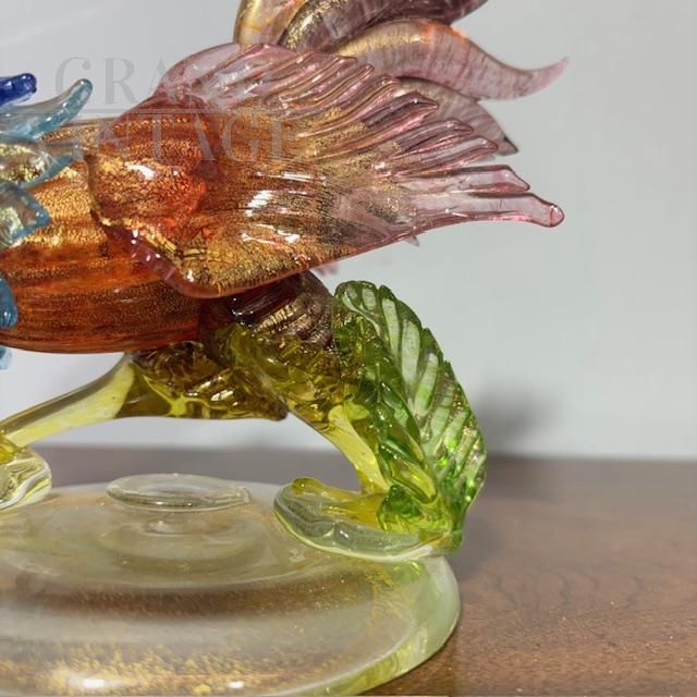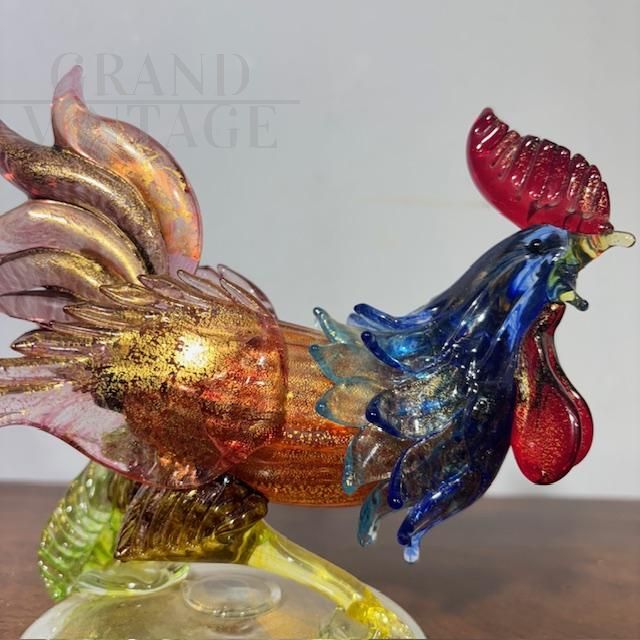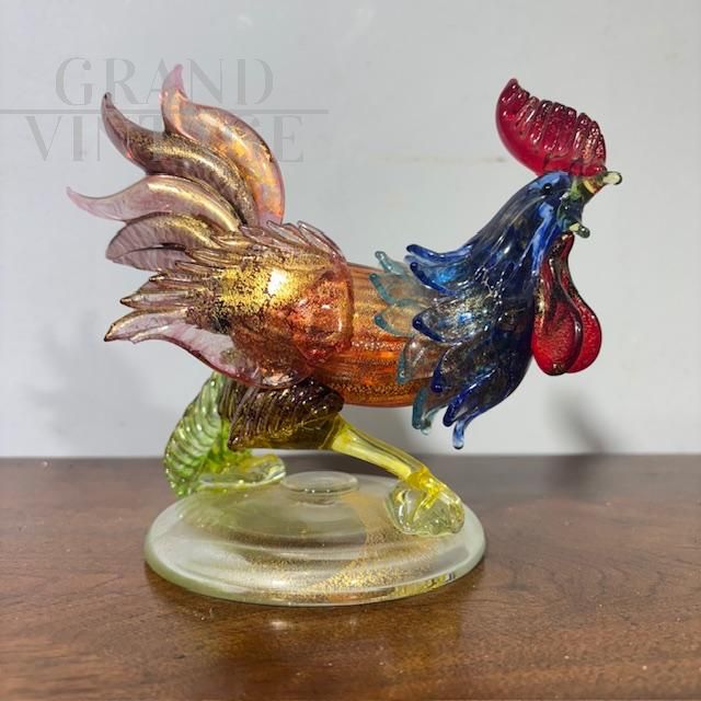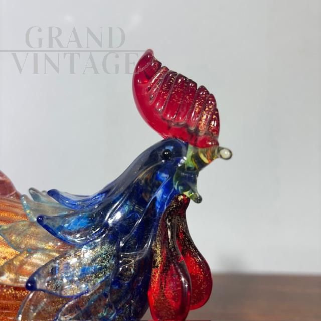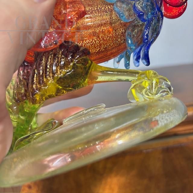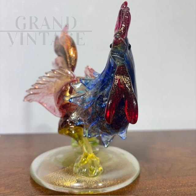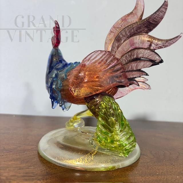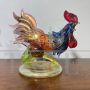 Splendida scultura di gallo in vetro di Murano artistico di manifattura Barovier e Toso anni '50, dai meravigliosi colori cangianti, in perfetto stato di conservazione.