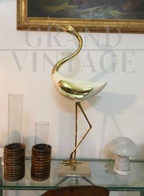 Bellissima scultura di Antonio Pavia raffigurante un airone, in legno laccato, avorio e bronzo dorato, Italia anni '70.