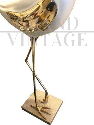 Scultura in airone in legno laccato e bronzo dorato di Antonio Pavia, anni '70