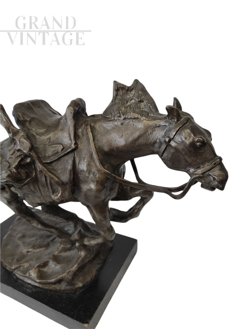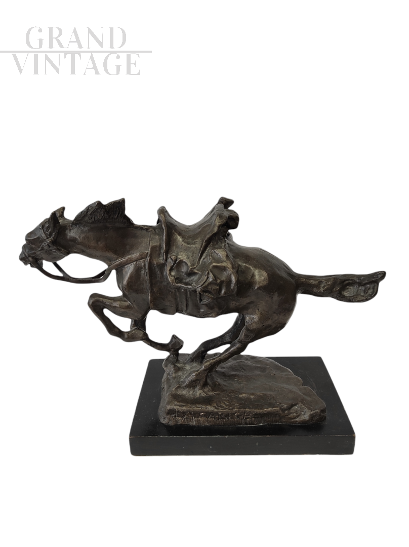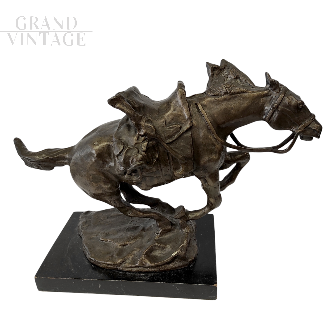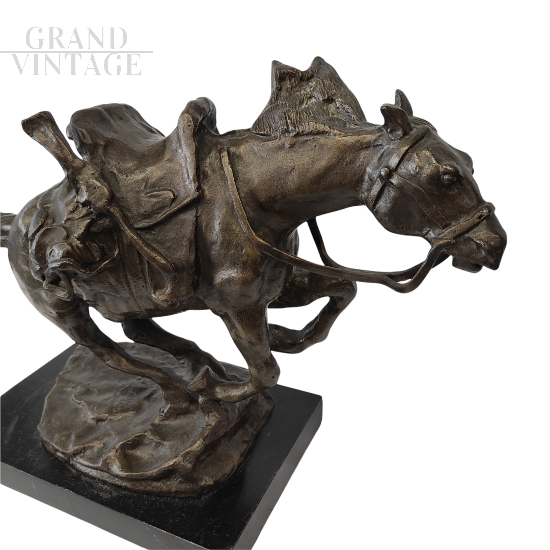 Scultura in bronzo patinato raffigurante un cavallo