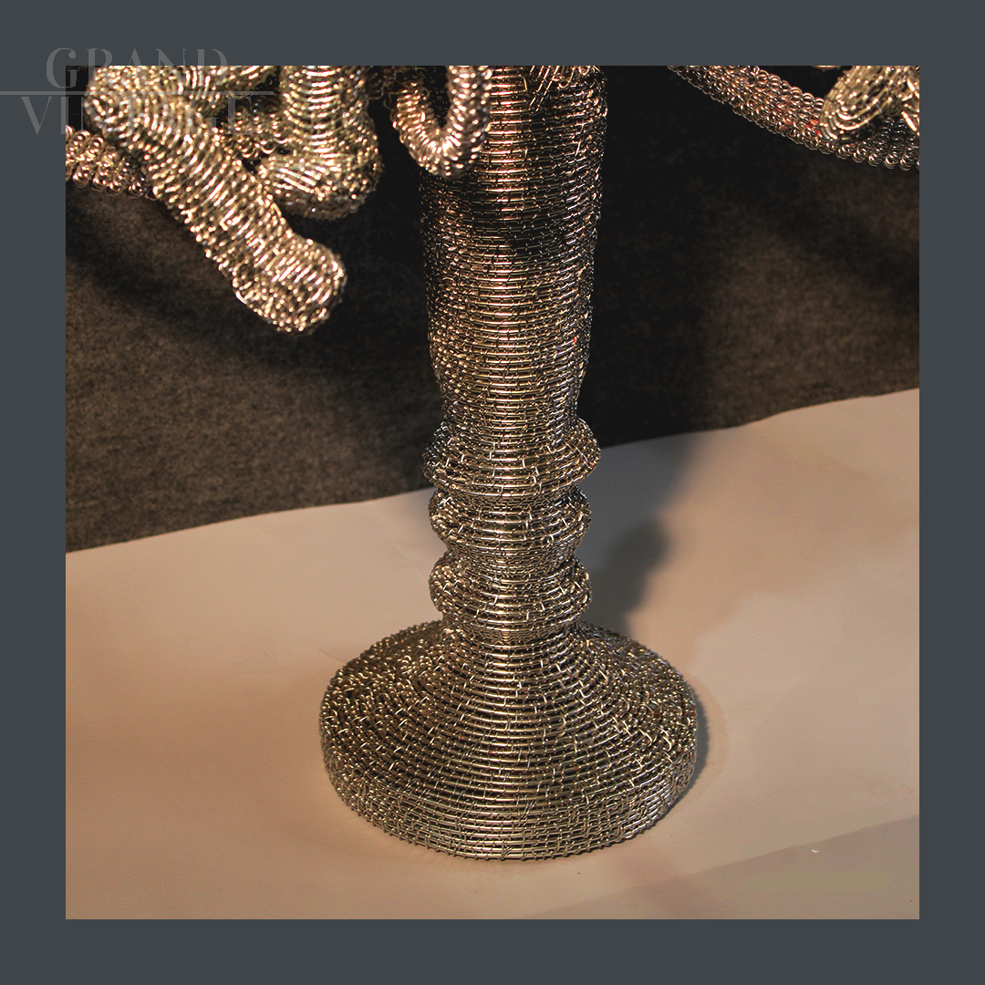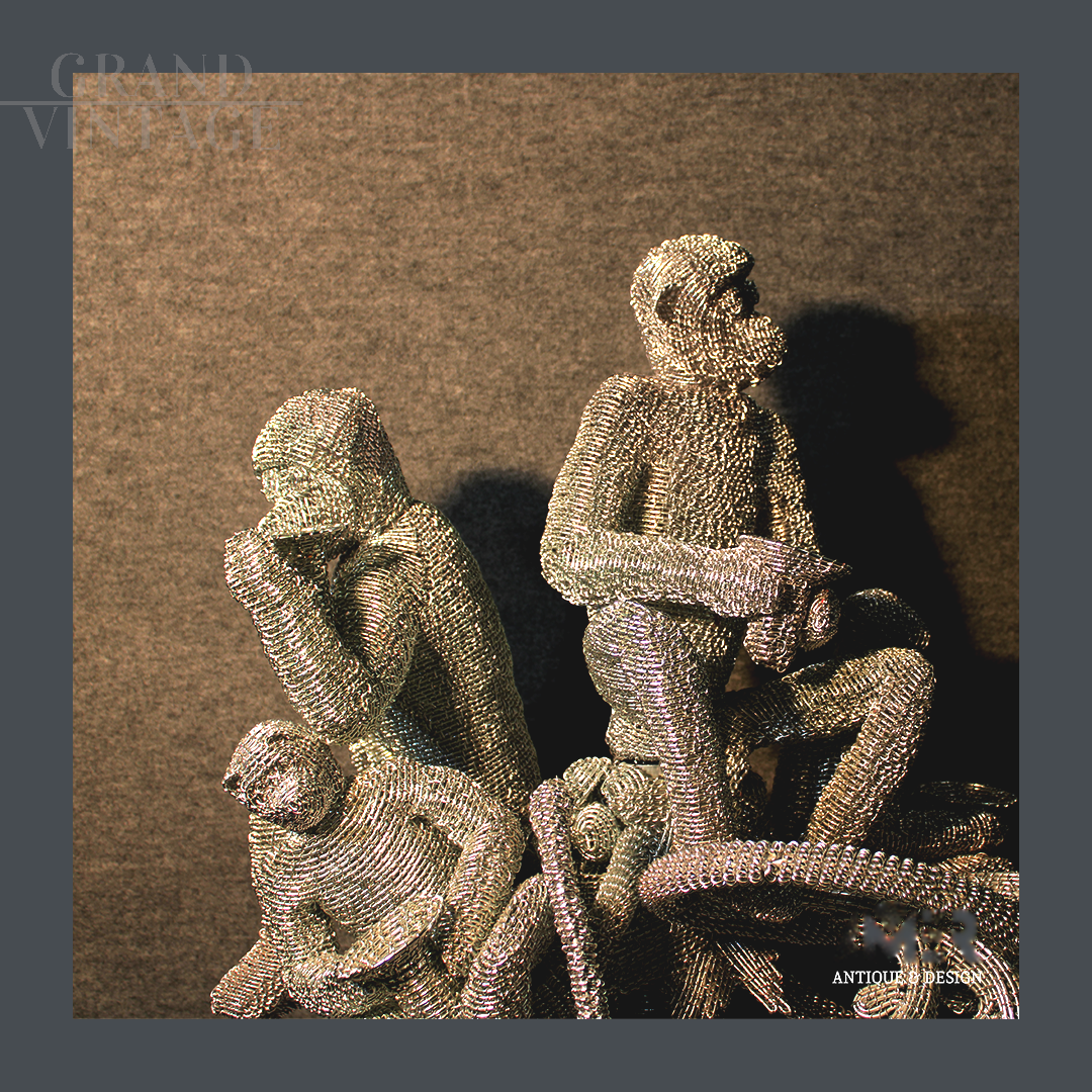 Una straordinaria scultura contemporanea realizzata interamente in filo di metallo intrecciato. Con dimensioni di 86 cm di altezza x 50 cm di larghezza e profondità, il soggetto delle tre scimmie unisce simbolismo filosofico e design moderno, con un livello di dettaglio che cattura lo sguardo. Una creazione unica per amanti dell’arte e del collezionismo. Perfetta come pezzo da esposizione o fulcro di un ambiente di design.